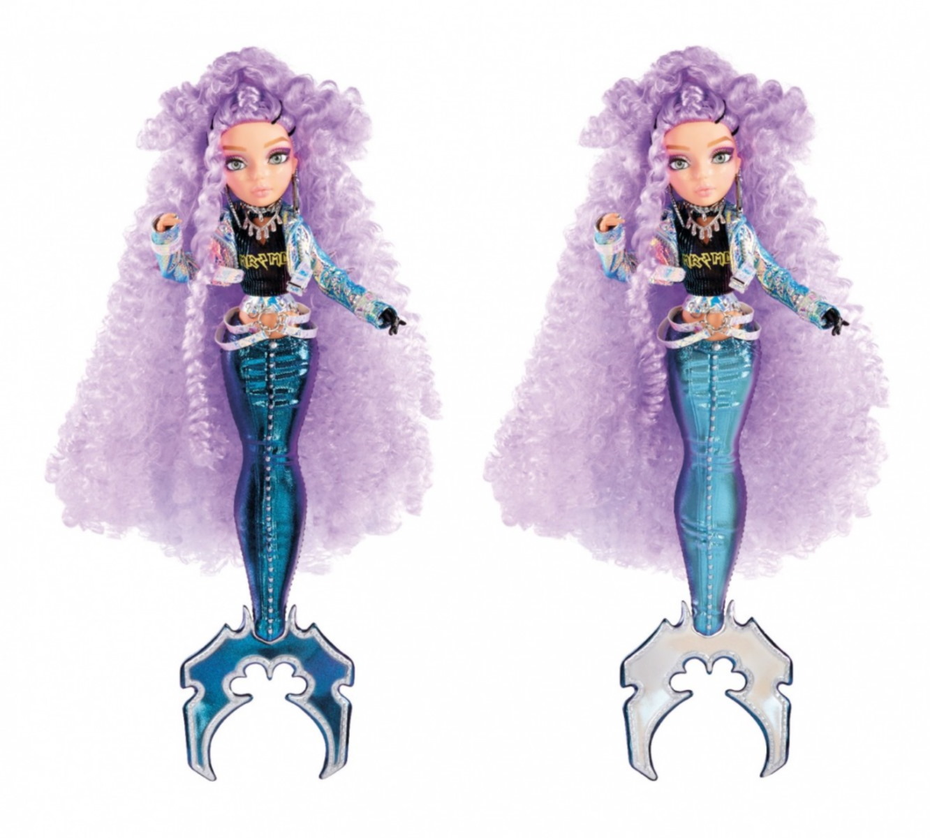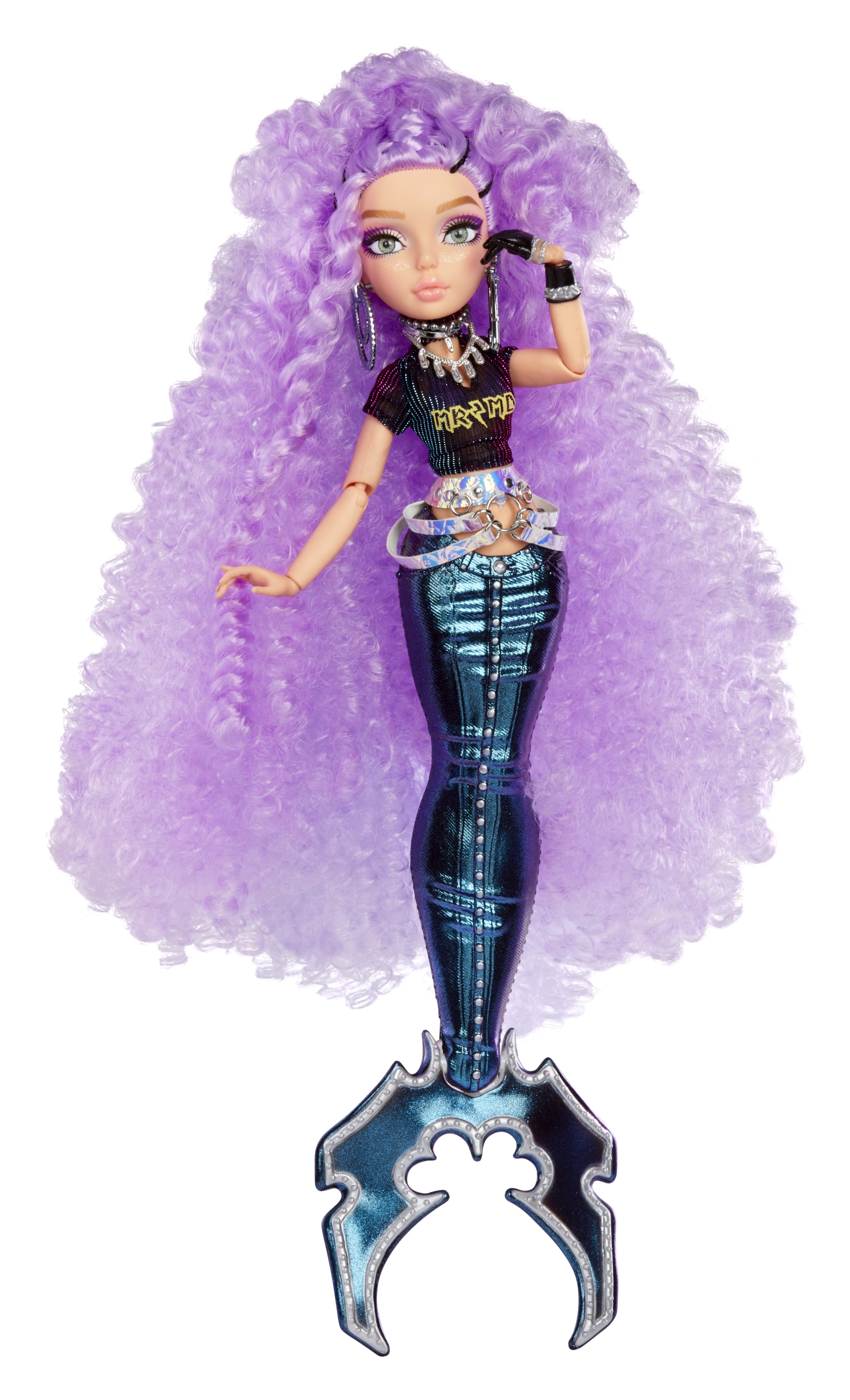 ЧАРІВНА РУСАЛКА. Досліджуйте підводне життя Mermaze Mermaidz. Це Рів’єра, прекрасна лялька-русалка з чудовими скляними очима, віями, вишуканим макіяжем і кучерявим фіолетовим волоссям із чорними мікрокосами