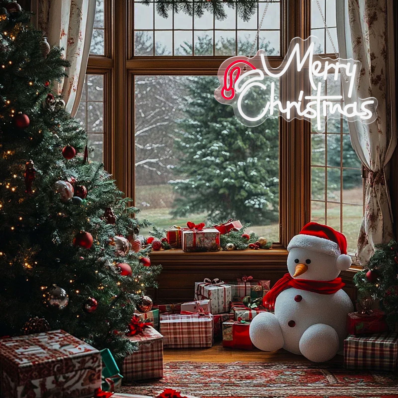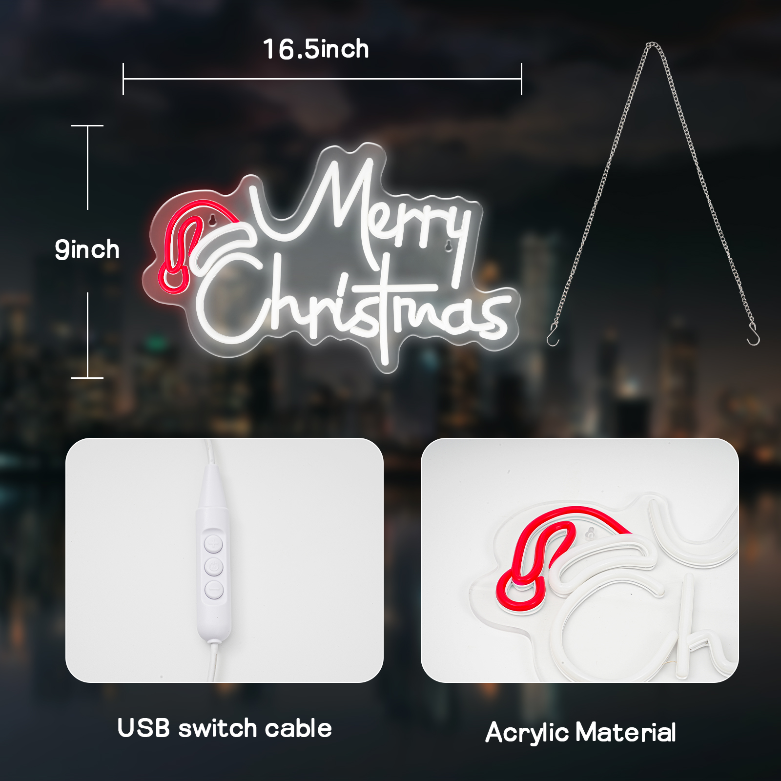Вбудований підвісний ланцюжок робить прикрасу надзвичайно простою у встановленні – повісьте її на стіну, у вікно, над каміном або на двері, щоб додати різдвяного шарму інтер’єру за кілька хвилин. Виготовлена з міцних матеріалів, неонова вивіска шириною 41 см забезпечує тривале освітлення та захоплююче сяйво, яке порадує вашу родину, гостей і, можливо, навіть самого Санта-Клауса!