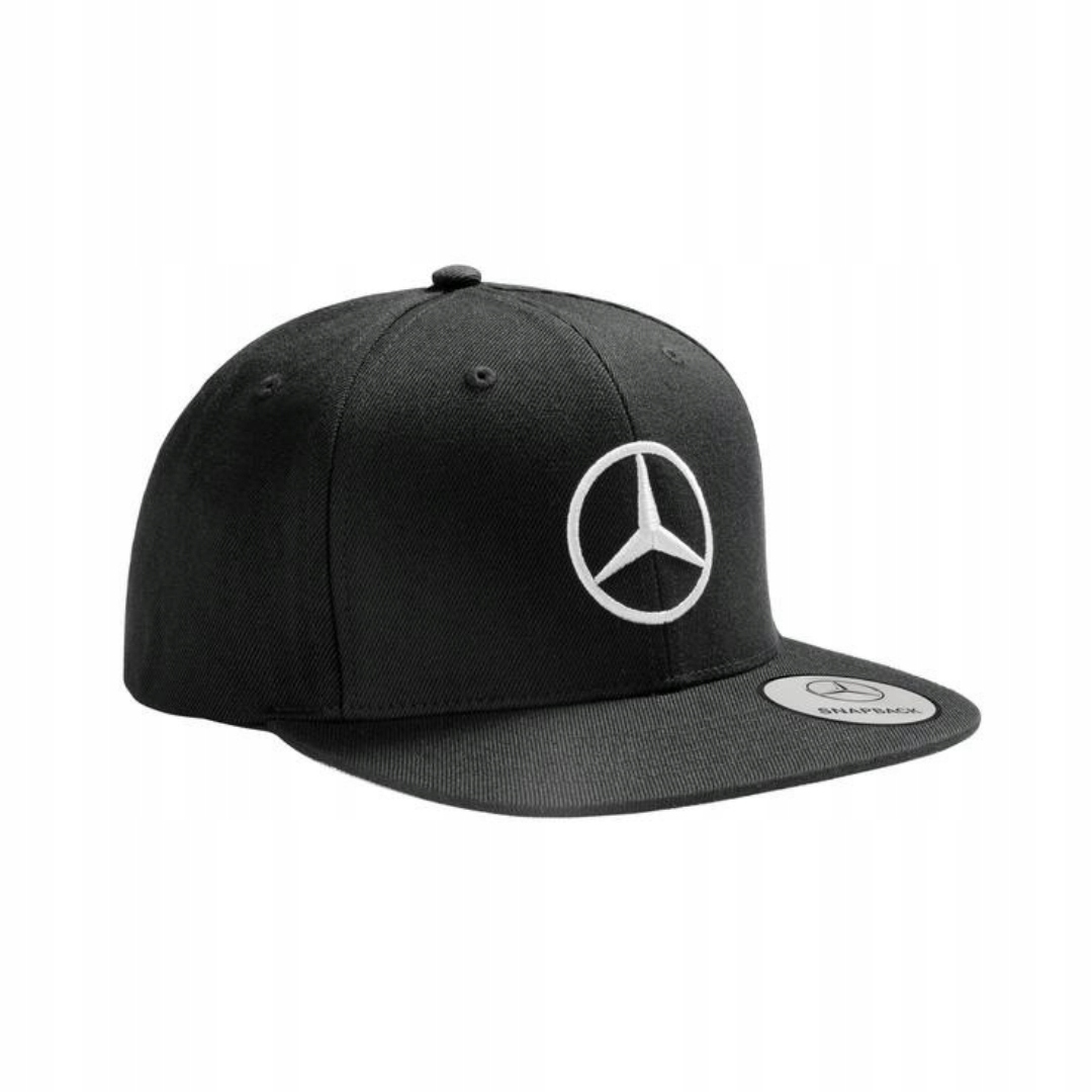 Кепка Mercedes-Benz із поліакрилу та вовни класичного чорного кольору з вишитим сріблястим 3D логотипом на передній панелі сріблясто-сірого кольору. Підкладкова стрічка з сріблясто-сірим написом Mercedes-Benz. Ширину шапки можна регулювати за допомогою чорного пластикового ремінця ззаду.