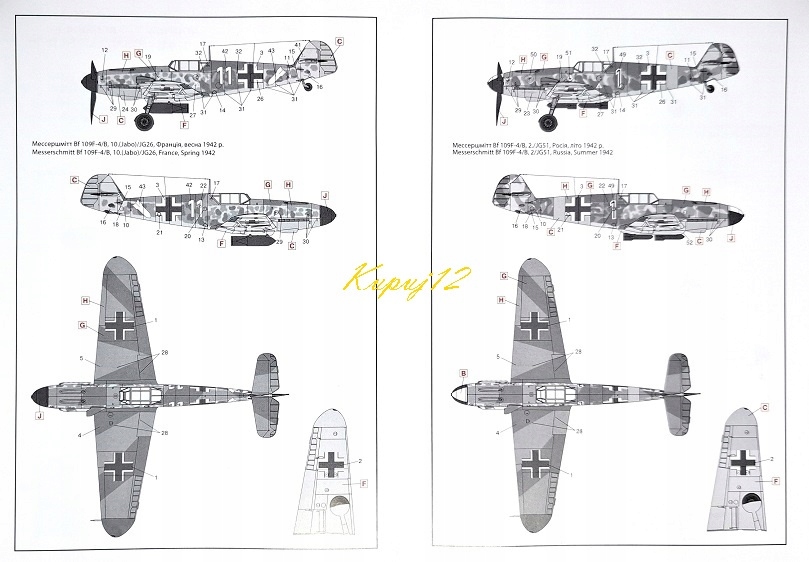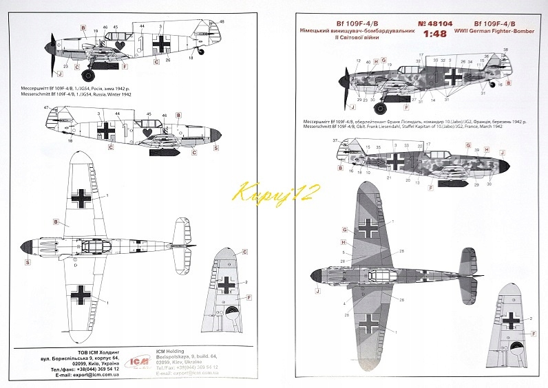 і фарб для фарбування літака Messerschmitt Bf 109f-4/b ICM