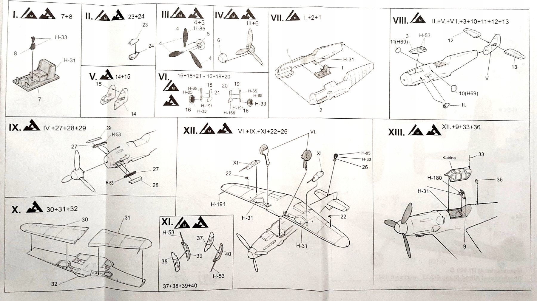 Пластикові елементи слід вирізати з рам, підігнати та склеїти відповідно до інструкцій зі складання, що додаються. .