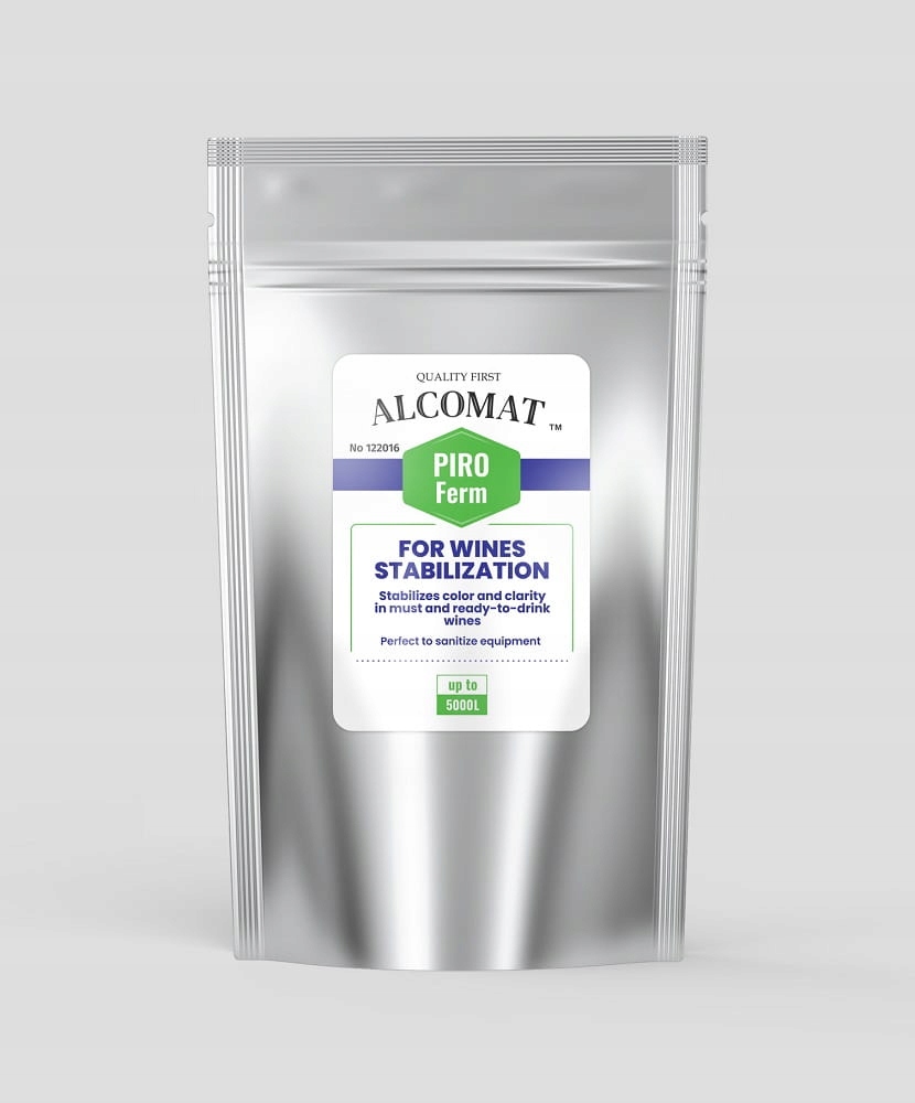 Алкотестер PIRO Ferm – це засіб, який зазвичай використовується у виноробній, пивоварній та лікеро-горілчаній промисловості. Засіб запобігає розвитку несприятливої мікрофлори в суслі, що піддається зброджуванню, і захищає виноробні умови від інфекції. Його додатковою перевагою є те, що він виключає присутність диких дріжджів. Має форму білого кристалічного порошку.
