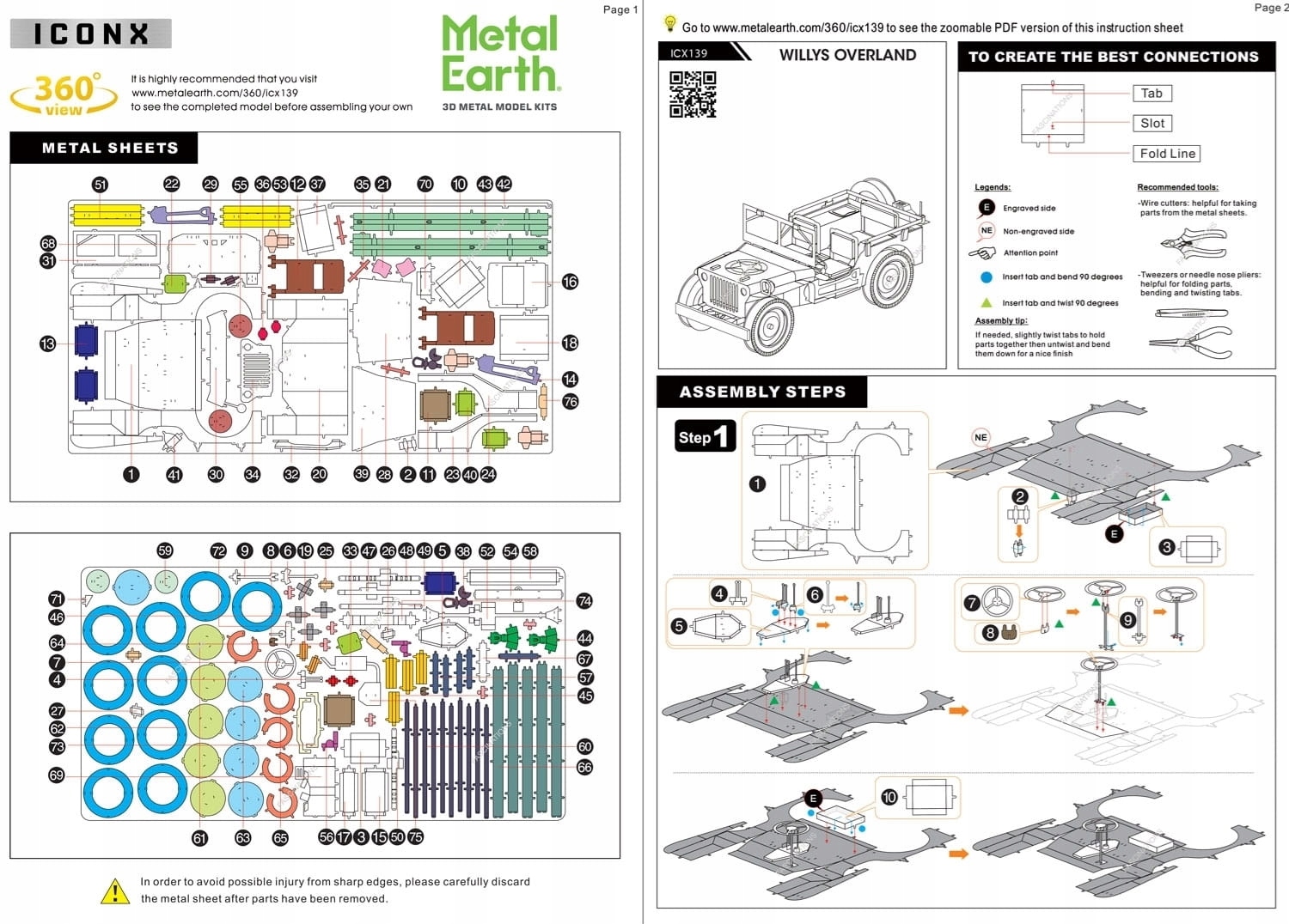 Модель Jeep Willys Owerland складається з двох листів, кожен розміром 21,08 см. x 10,92 см.