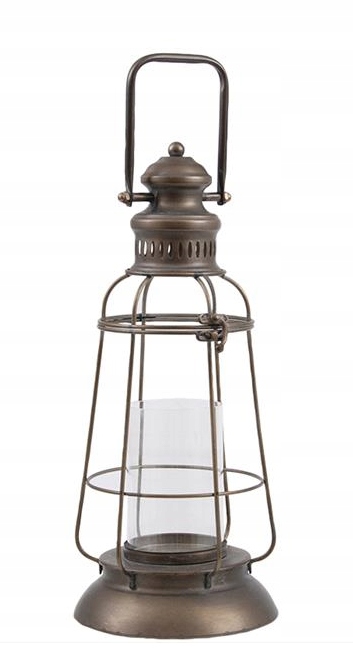 Металевий ліхтар коричневих і сірих відтінків, схожий на стару масляну лампу. Класична форма і позачасовий характер чудово впишуться в класичний інтер'єр або стануть контрастним доповненням в лофтових квартирах. Крім того, він має ручку, яка полегшує його перенесення або підвішування. Добре підійде як елемент декору інтер'єру або як прикраса літньої тераси чи балкона. Підходить для чайних свічок або окремої свічки.