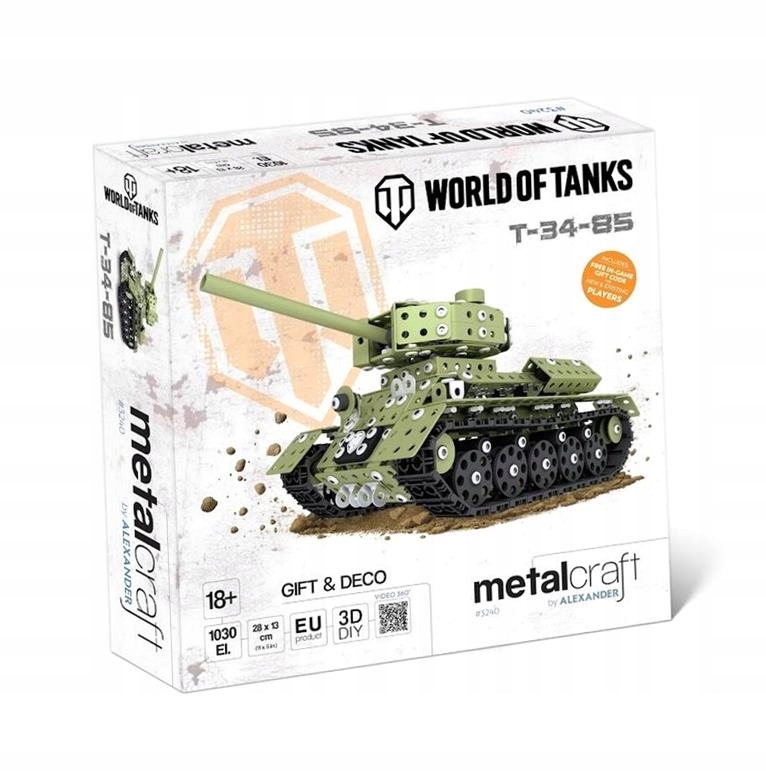 Ефектна металева модель танка Т-34-85, яка збирається самостійно, стане яскравою прикрасою для кожного фаната гри WORLD OF TANKS. Виріб ручної роботи з понад 1000 металевих пластин і гвинтів, який незабаром може прикрасити вашу полицю, комод, стіл або вітрину.