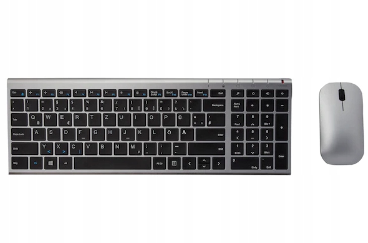 Дуже тонкий дизайн, клавіші швидкого доступу до Інтернету та мультимедіа, бездротова технологія 2,4 ГГц (діапазон до 5 м), оптична бездротова миша з 5 кнопками + колесо прокручування, USB,