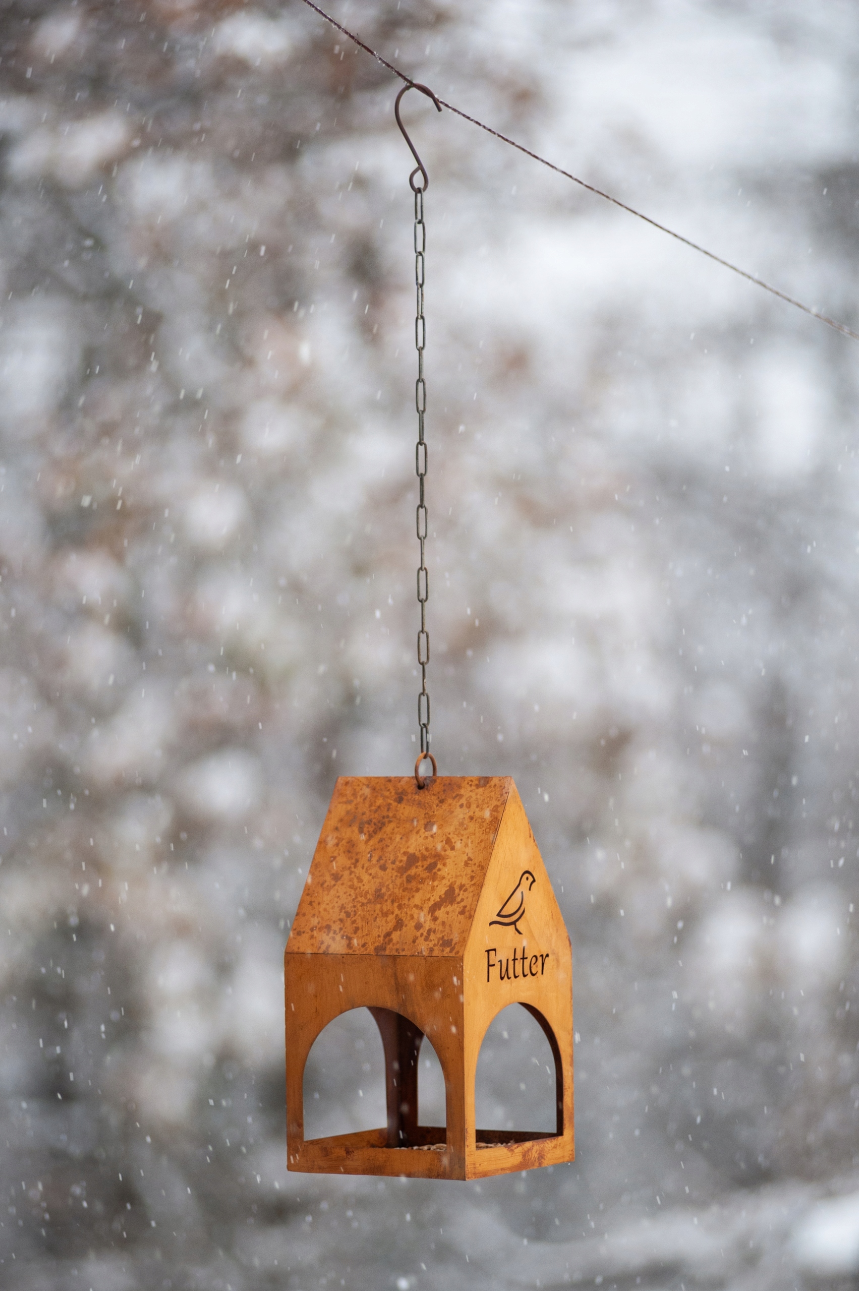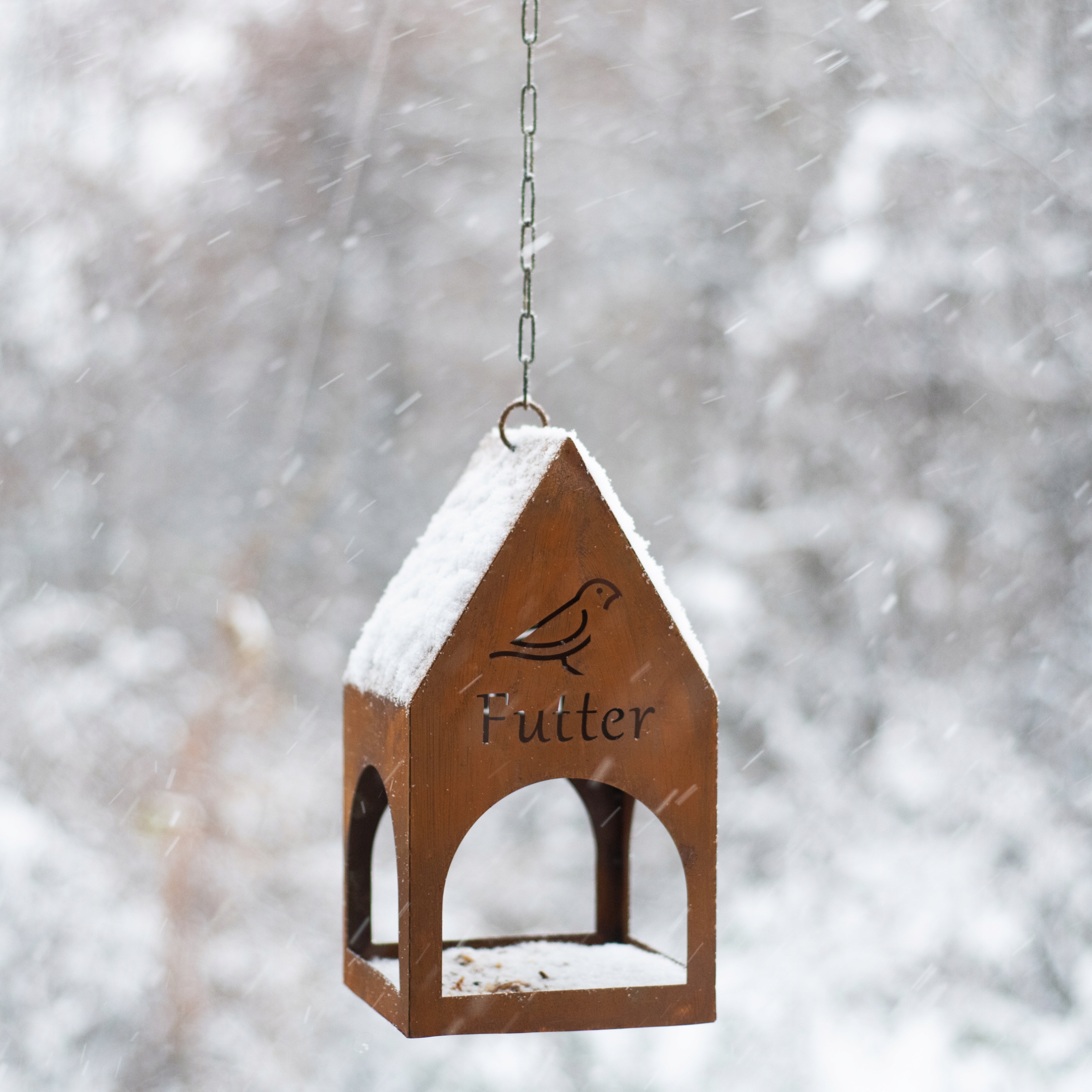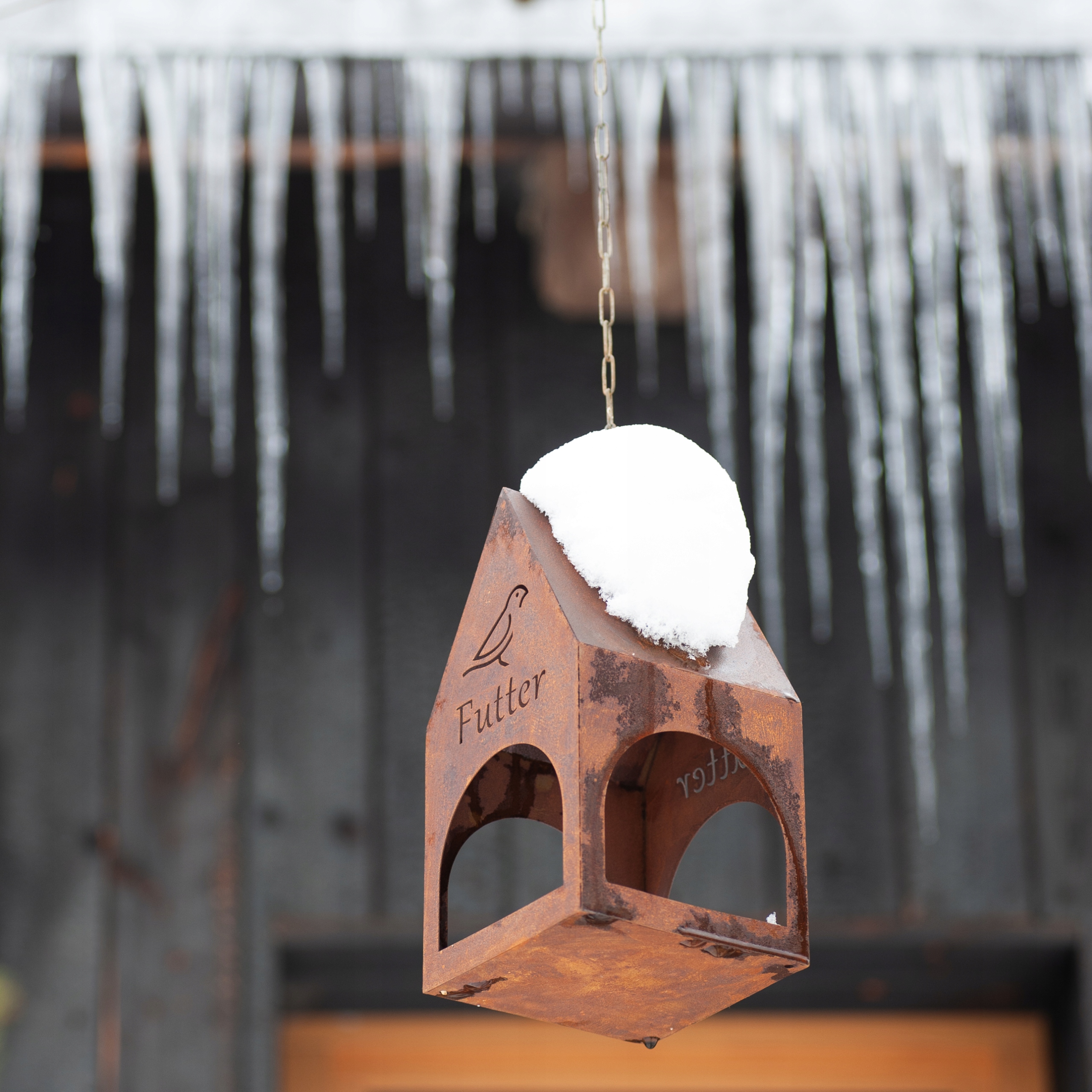 ⭐ Годівниця для птахів із металевим будиночком Futter Shed на ланцюжку з ефектом Кортена