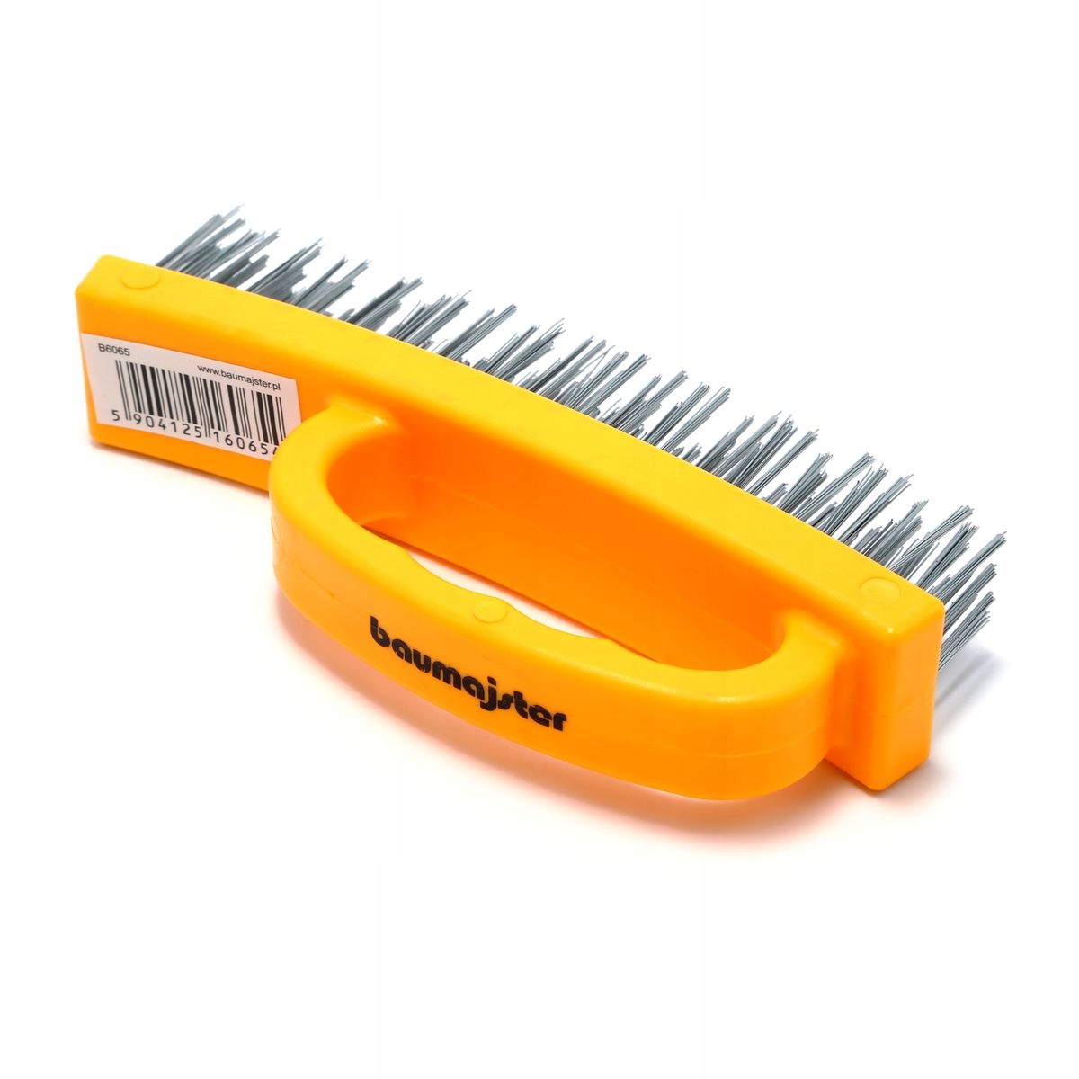 передня метал ручної щітки з пластиковою ручкою Baumajster використовується для ручної обробки поверхневої обробки елементів, виготовлених з металу та чорної сталі. Це дозволяє, серед інших, для очищення поверхонь із елементів старих шарів фарб і лаків, усунення корозії та рейдів, вирівнюючих країв і зади тощо. Він складається з пластикового корпусу, до яких кріпиться сталеві дроти, до яких (вбудовані). Спеціальна форма тіла з побудованою ручкою збільшує ергономіку зчеплення та захищає руку під час роботи.