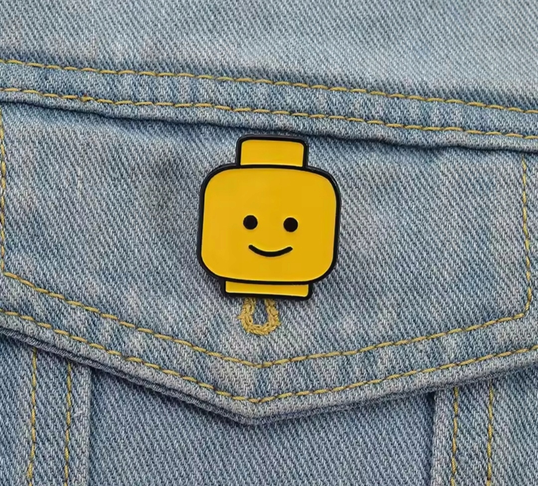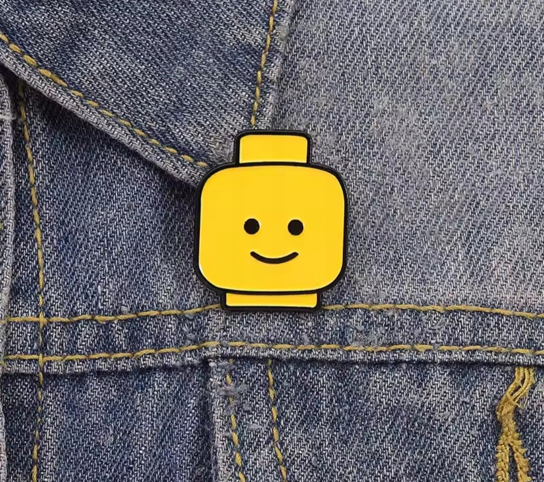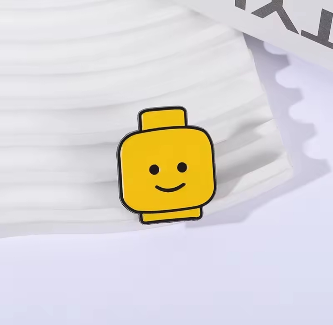 Металева емальована шпилька - Голова чоловічка з Lego