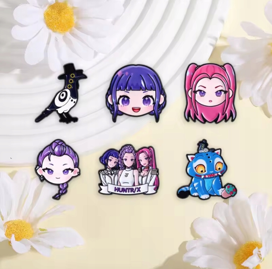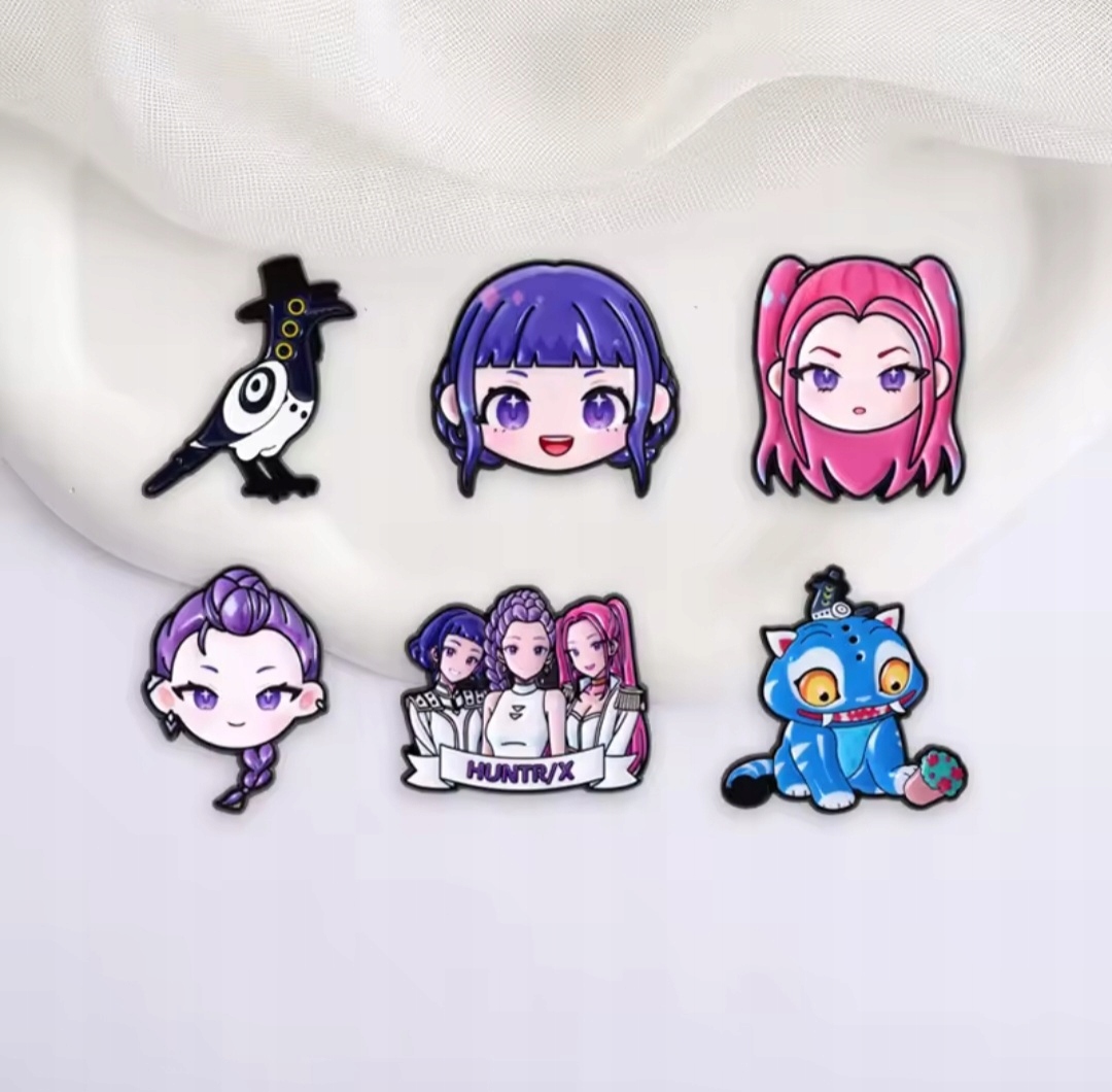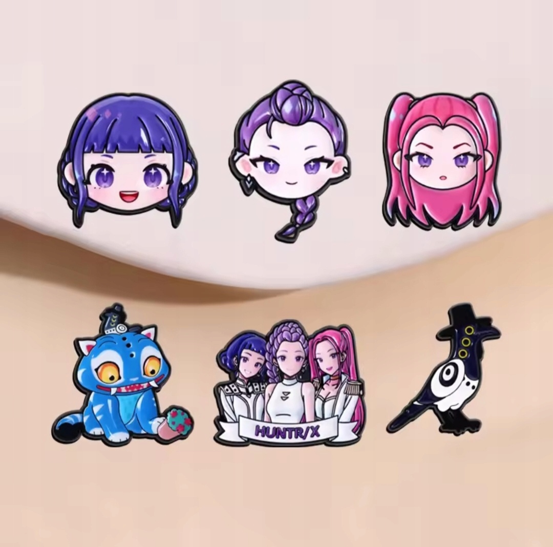 Емальований металевий шпилька, що зображує персонажів з анімаційного фільму Netflix "K-pop Demon Hunters"(K-pop Demon Hunters).