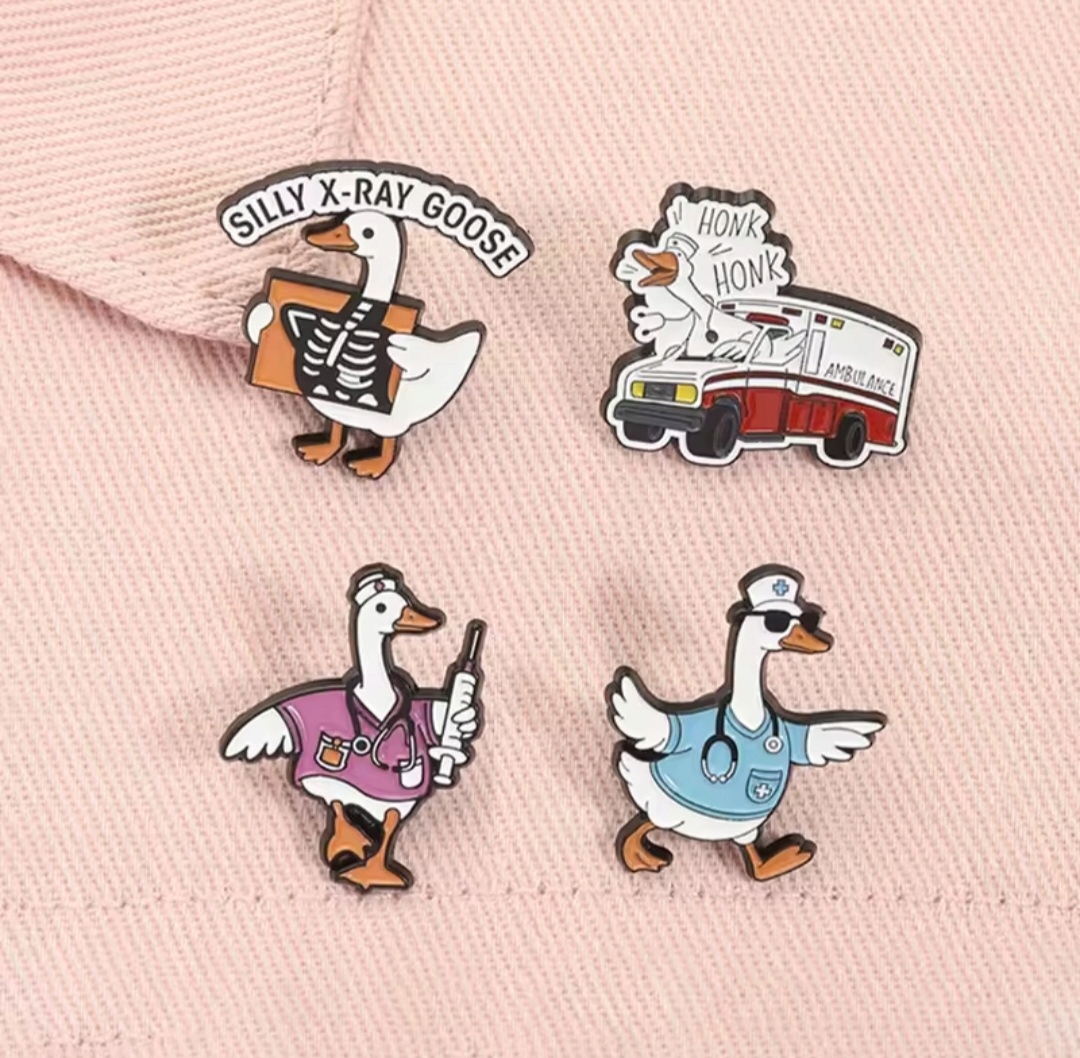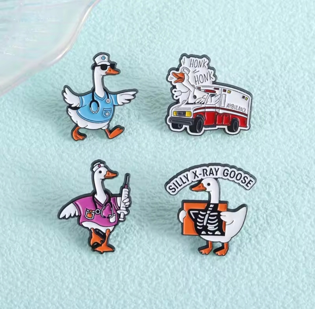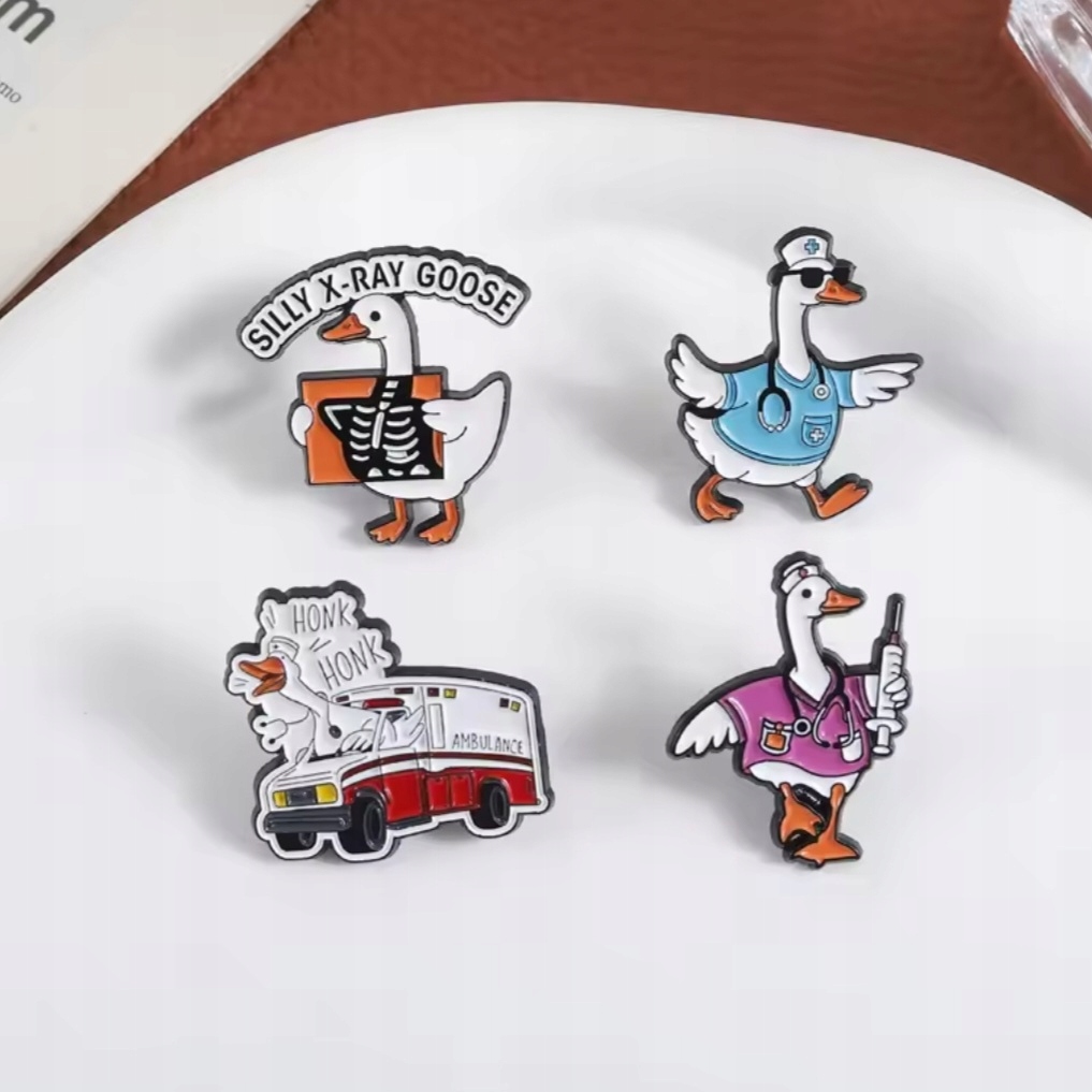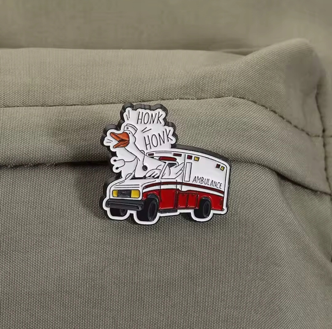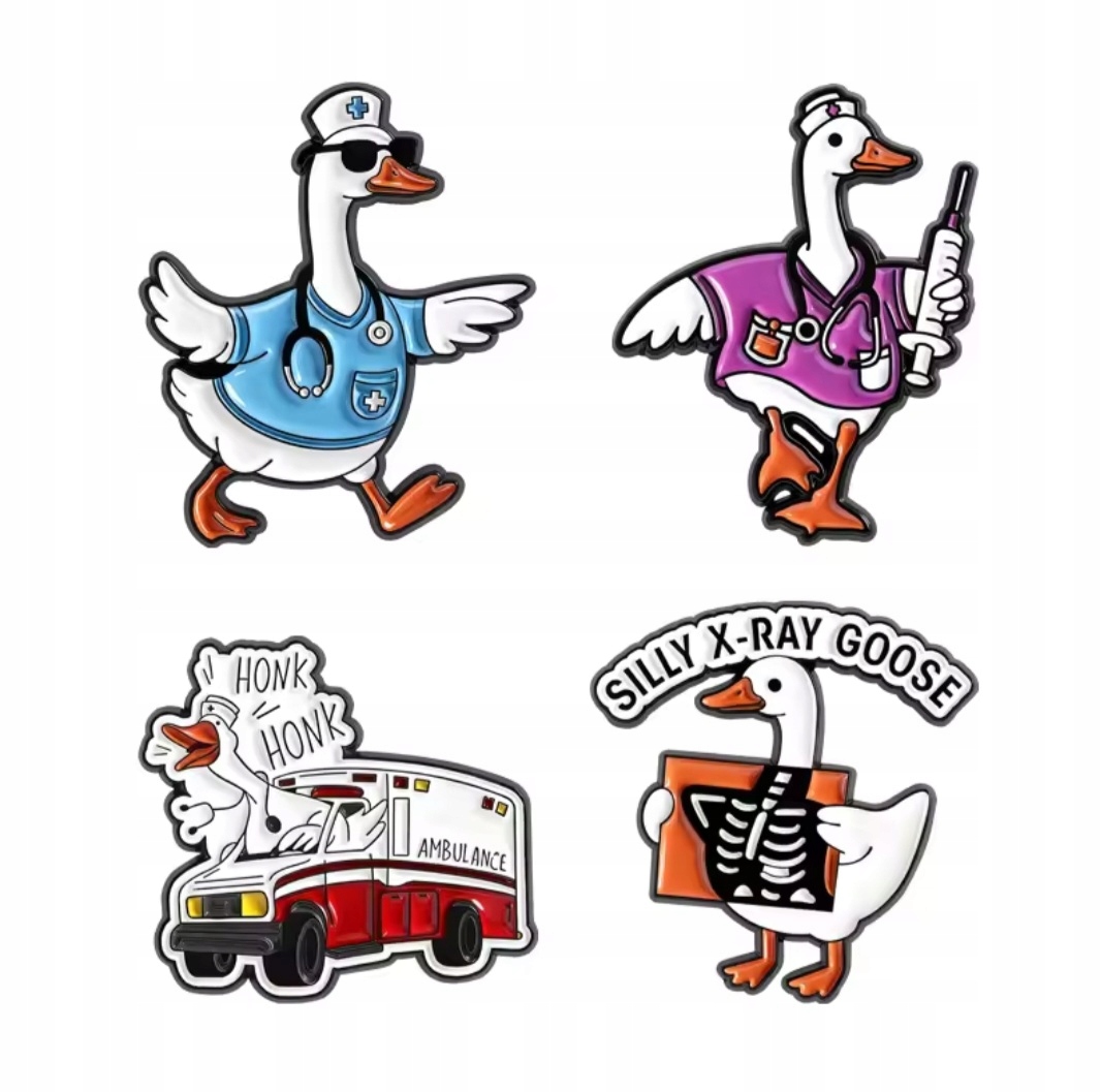 Металева емальована шпилька Гуска в костюмі лікаря швидкої допомоги