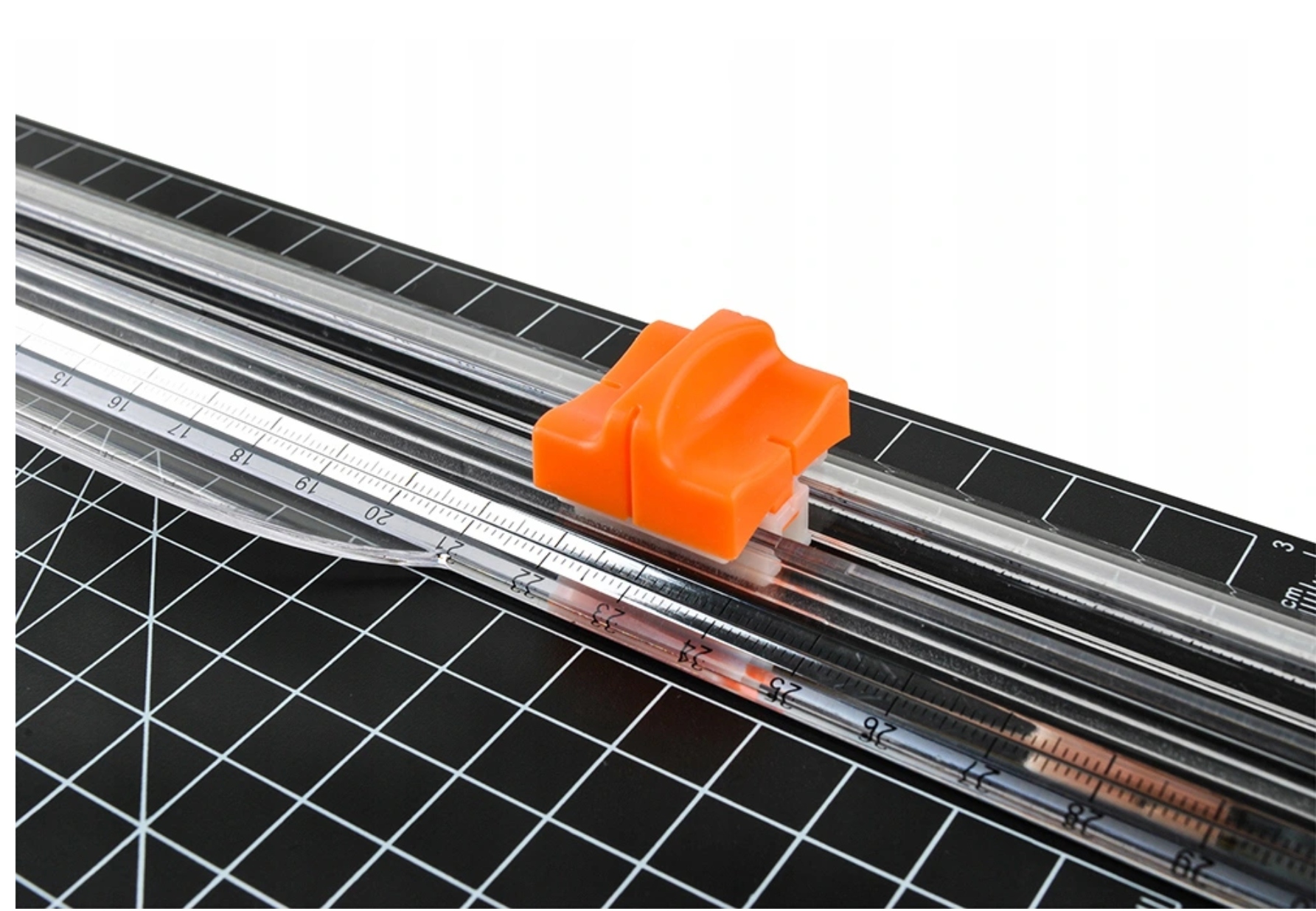 Різак паперу підтримує широкий діапазон форматів, аж до A3. Це робить тример універсальним і може бути інструментом, який можна успішно використовувати в різних видах завдань. Точне лезо розрізає до 12 аркушів паперу вагою до 80 г/м2. Укладання паперу та визначення лінії розрізу спрощується завдяки шкалі, вираженій у сантиметрах і дюймах. Гільйотина також має кутове маркування, яке дозволяє різати папір під кутом від 45° до 90°. У разі менших форматів паперу та простіших робіт достатньо використовувати базову сітку з вимірюваннями, а для більших форматів використовувати додаткову шкалу, прикріплену внизу пристрою.