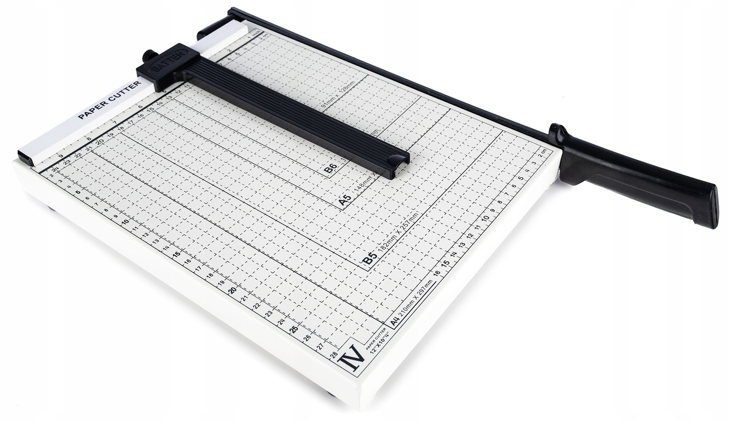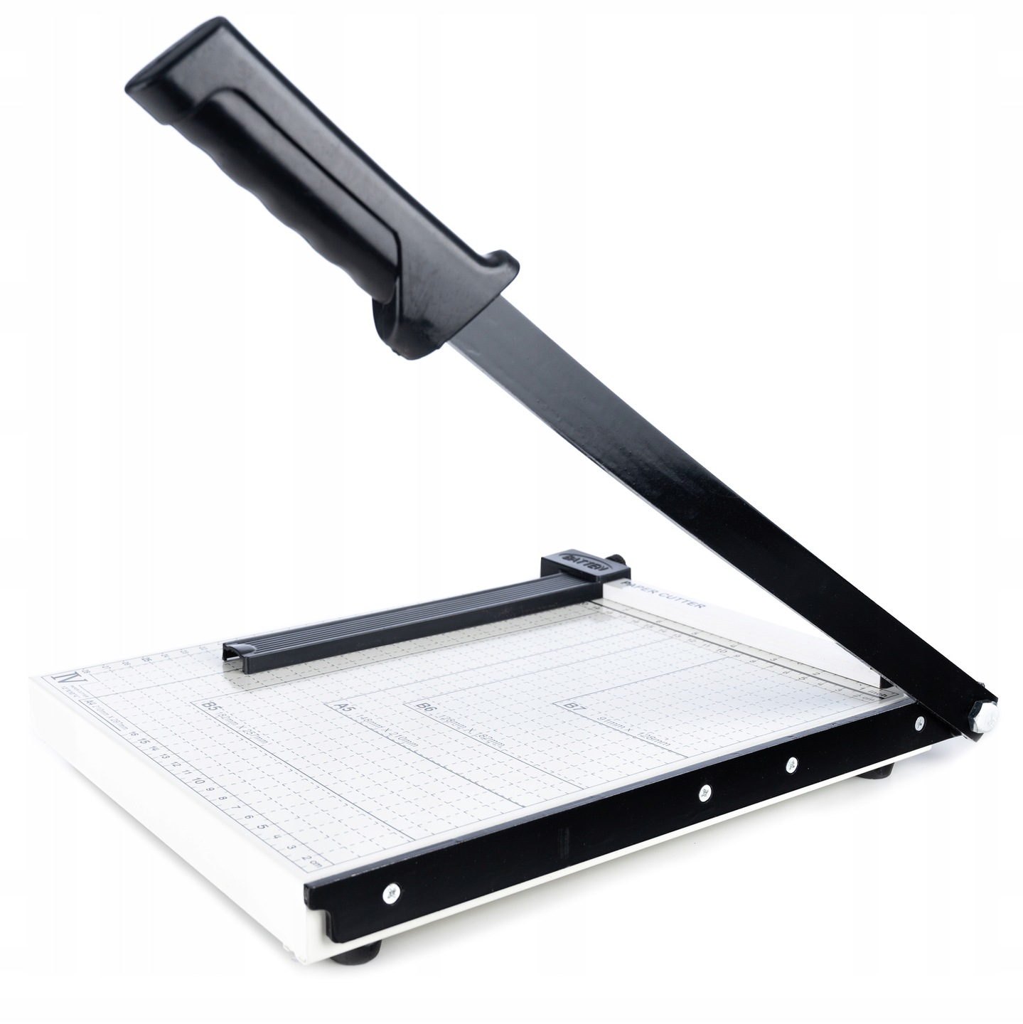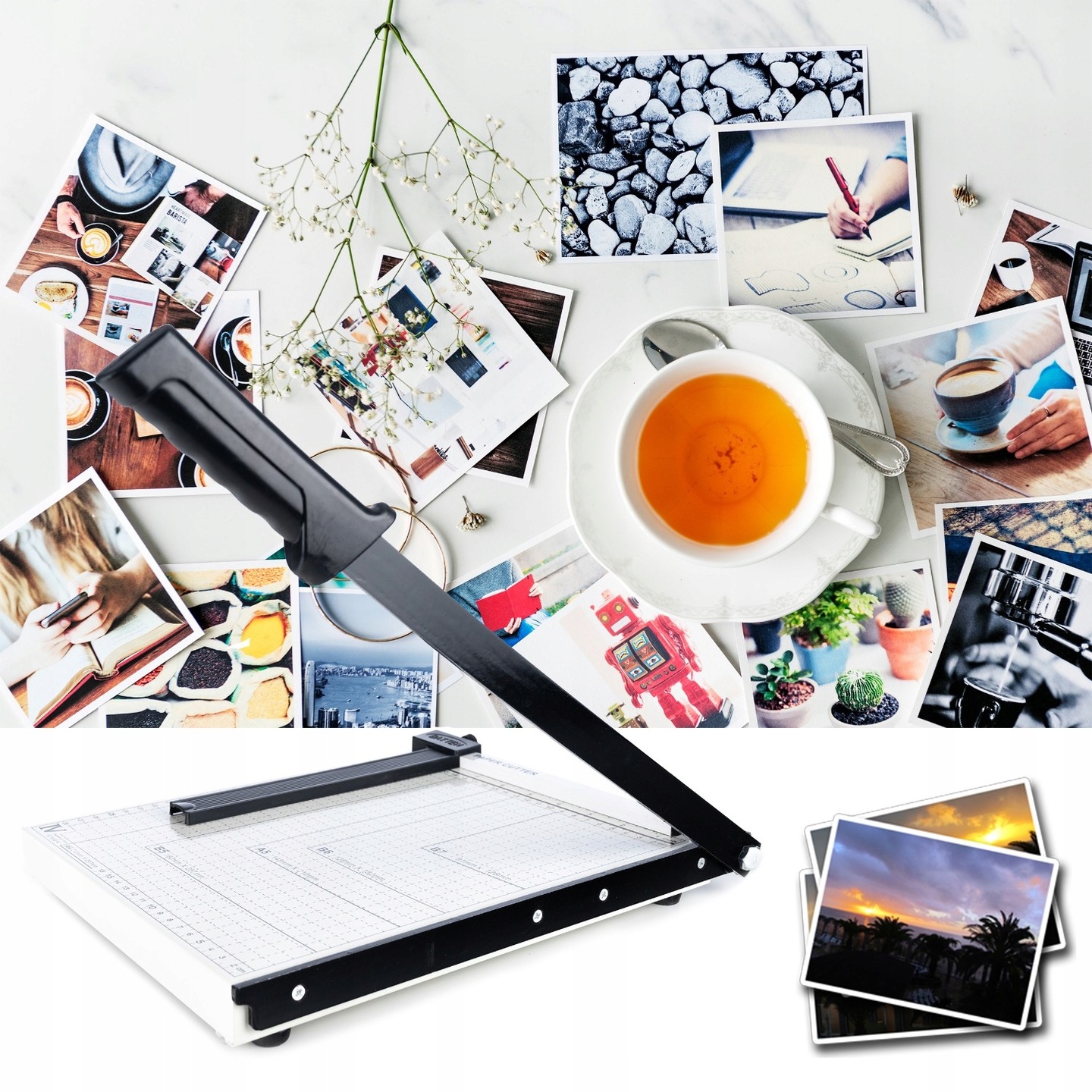 Гільйотина виготовлена з високоякісної, міцної, загартованої сталі. Загартоване лезо дозволяє швидко і точно нарізати папір, листівки, фотографії та візитні картки до потрібного розміру. Розрізає файл до 12 аркушів паперу щільністю 80 г/м2. Оснащений зручною вимірювальною сіткою (одиниці вимірювання: дюйми, сантиметри) зі стандартними розмірами паперу (B7, B6, A5, B5, A4).