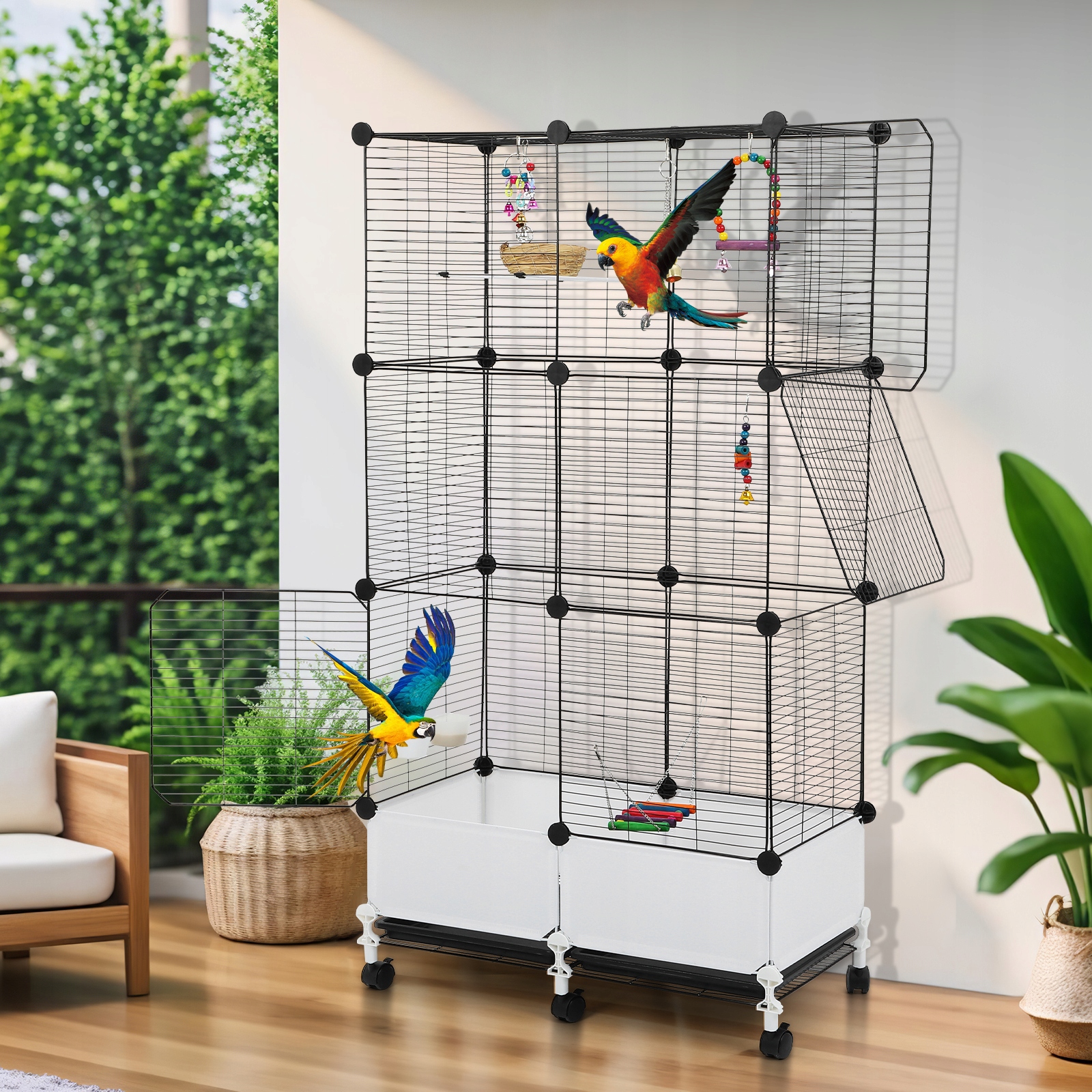 Ця стійка та зручна клітка для птахів із високоякісного пластику та заліза забезпечує хороші умови для ваших домашніх птахів і водночас забезпечує достатньо місця для годування. Можна використовувати на підлозі чи будь-якому іншому місці, яке вам подобається.