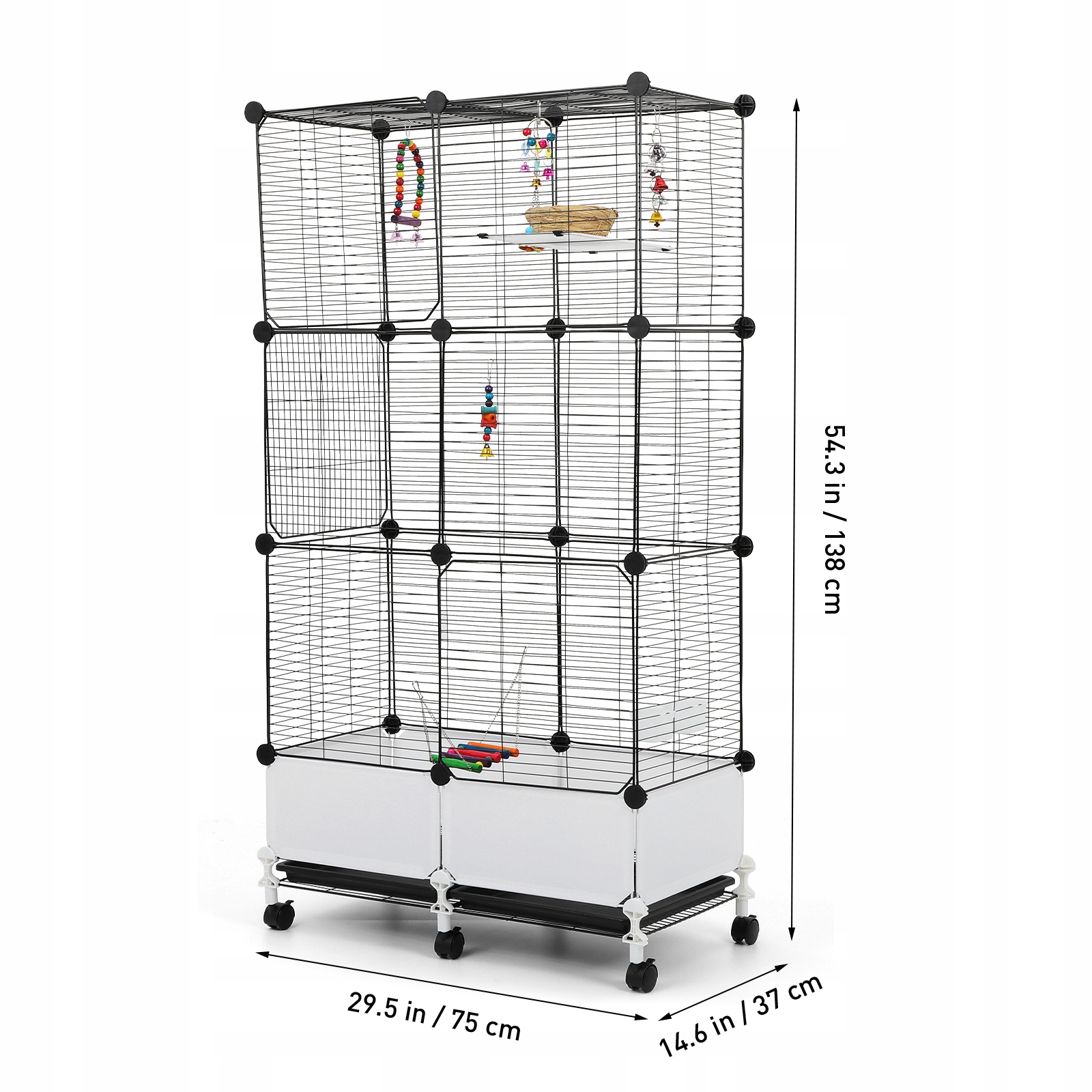 Коли ми говоримо, що ця клітка призначена для птахів, ми маємо на увазі це найкращим чином: це клітка, яка дійсно змусить їх співати! Просторий простір розміром 19,3 дюйма Д x 14 дюймів Ш x 39,2 дюйма В має вирізану стелю та відстань між решітками 0,4 дюйма, щоб вашим пернатим друзям було достатньо місця, щоб плюхатися, не втікаючи та не потрапляючи між ґратами.