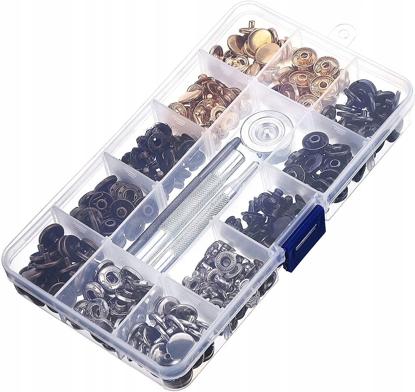 Крок 1: отримати все готовий. Вам знадобиться 1 капелюшок, 1 розетка, 1 стовпчик і 1 шпилька для кожного набору. Крок 2: за допомогою доданого перфоратора зробіть отвір у тканині та вдарте по ньому молотком. Крок 3: помістіть тканину між капелюхом і розеткою. Крок 4: загостреним інструментом і легким вертикальним молотком зіштовхніть кришку та розетку. Крок 5: Проткніть ще один отвір у тканині за допомогою перфоратора, що входить у комплект, і вдарте по ньому молотком. Крок 6: помістіть тканину між стовпчиком і шпилькою. Крок 7: використовуючи увігнутий інструмент, забийте брусок вертикально з легким зусиллям, щоб втиснути колони, і прибийте їх разом. Крок 8: зафіксуйте механізм разом.