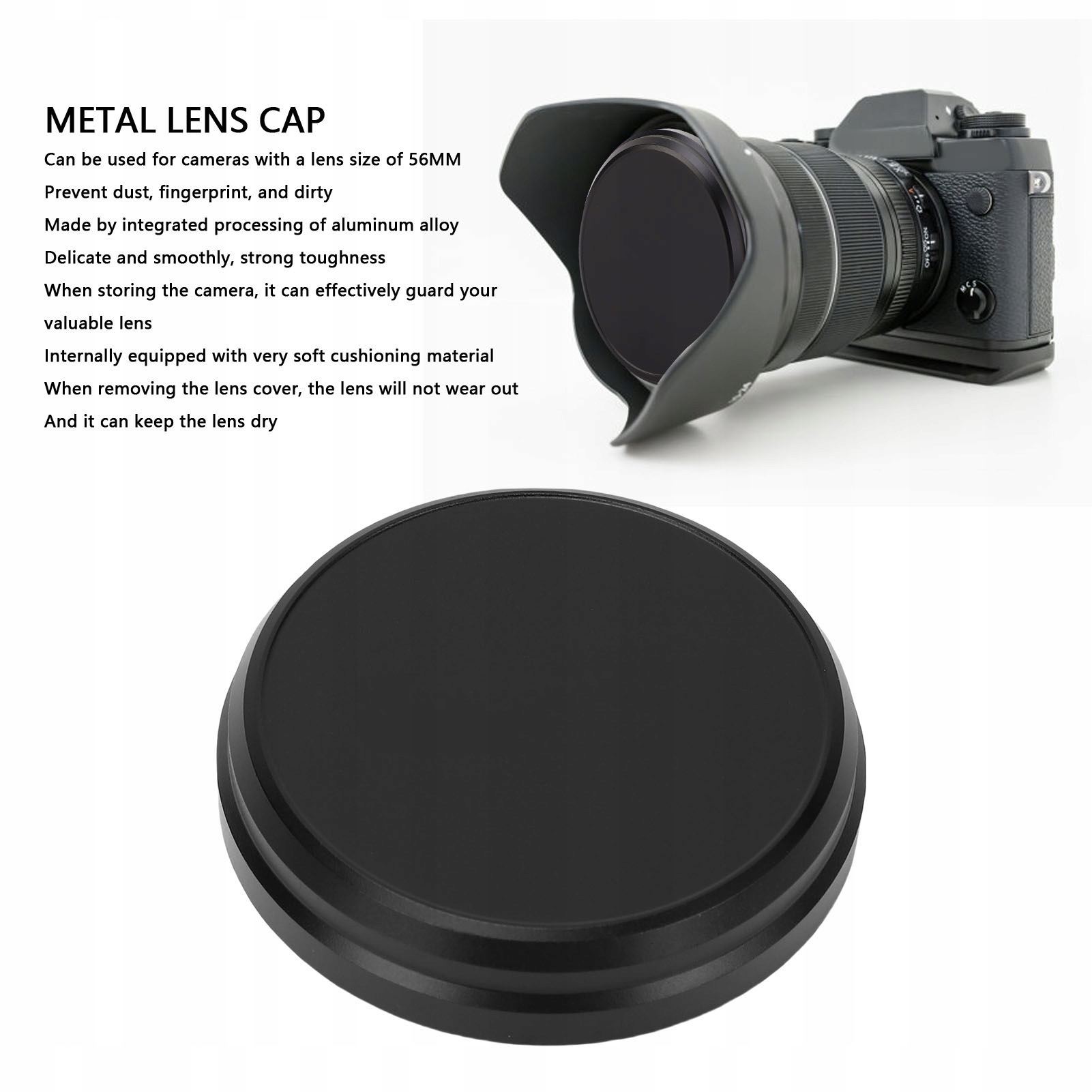 2. [Алюмінієва кришка] Кришка об’єктива виготовлена з інтегрованого алюмінієвого сплаву, делікатного та гладкого, з високою міцністю, що ефективно захищає ваш цінний об’єктив.