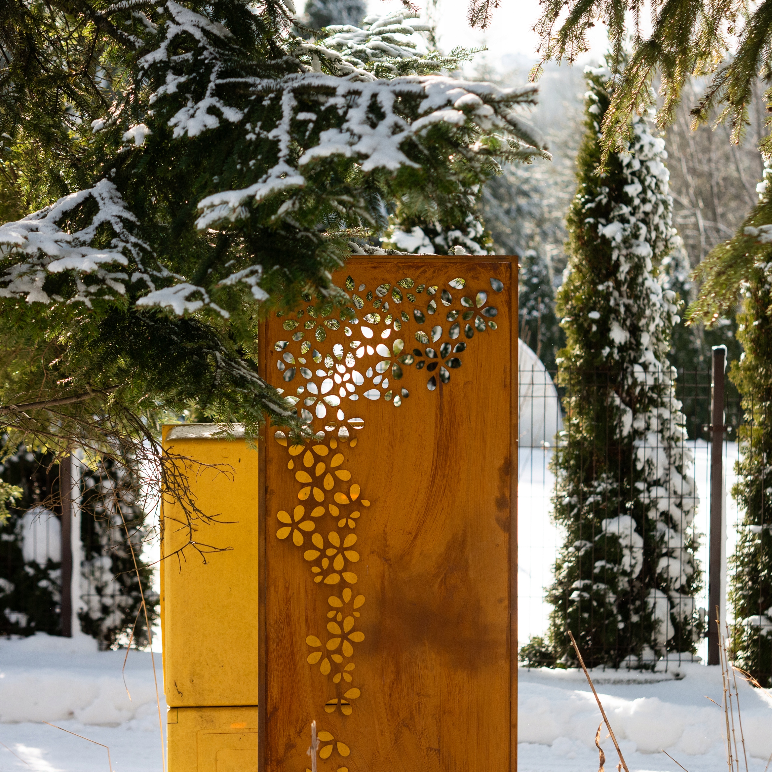 Металева кришка екрану Садова панель Квіти Іржавий ефект Кортена