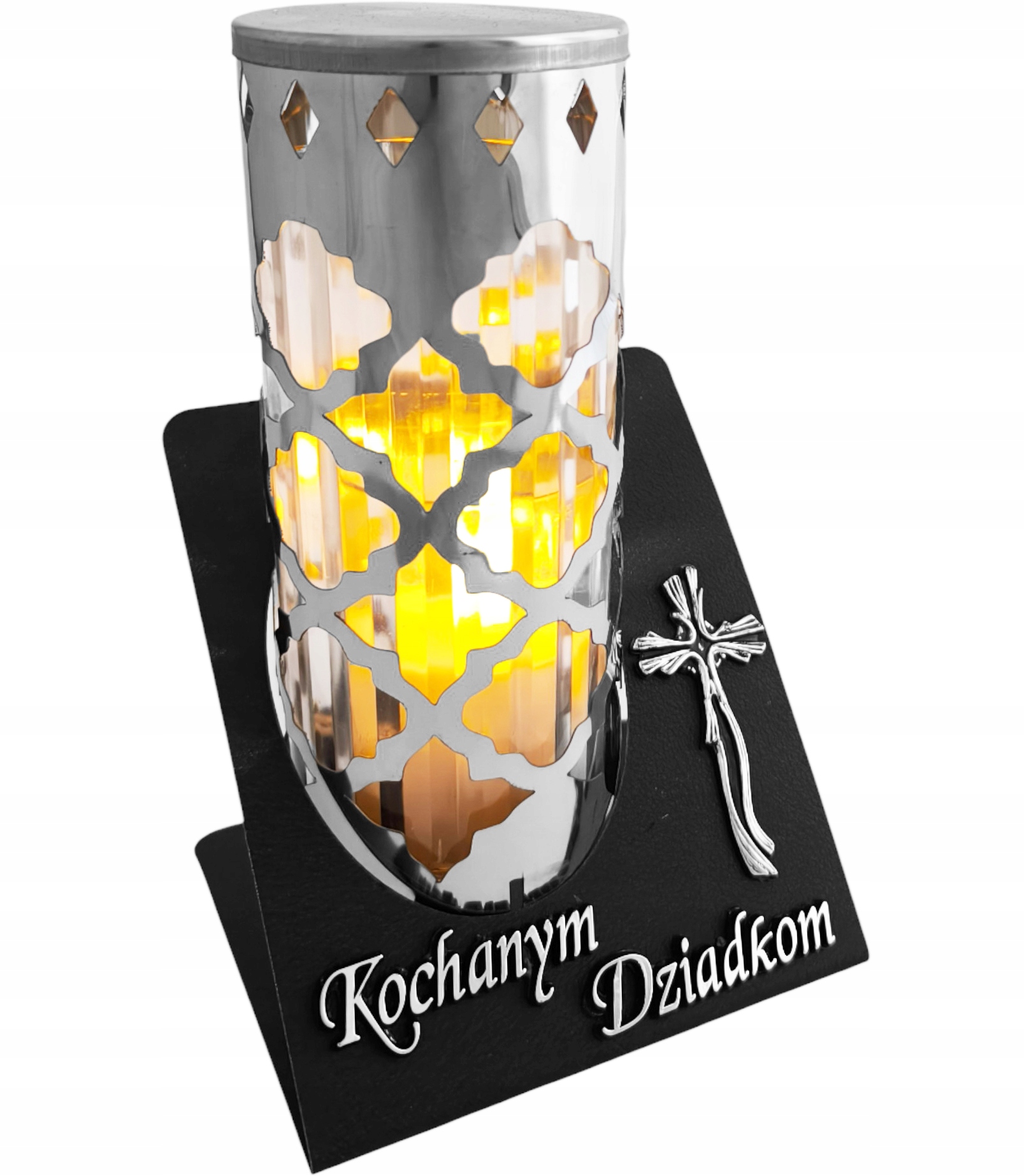 На ліхтарику є напис із присвятою коханим бабусям і дідусям та срібний хрест чи троянда.