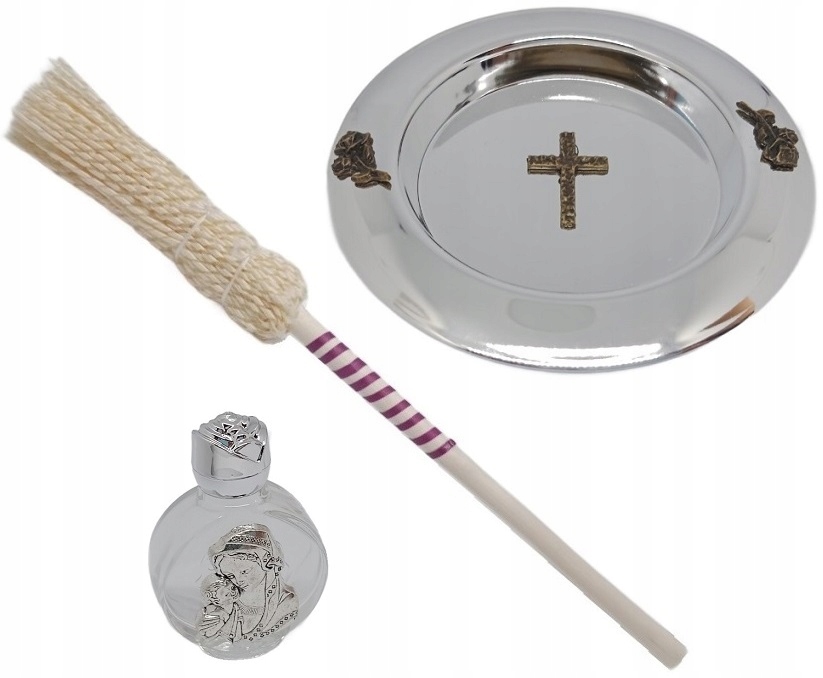 МЕТАЛЕВА МИСКА КРАПЕЛЬНИЦЯ СКЛЯНА ПЛЯШКА ДЛЯ СВЯТОЇ ВОДИ / КОЛЯДКА