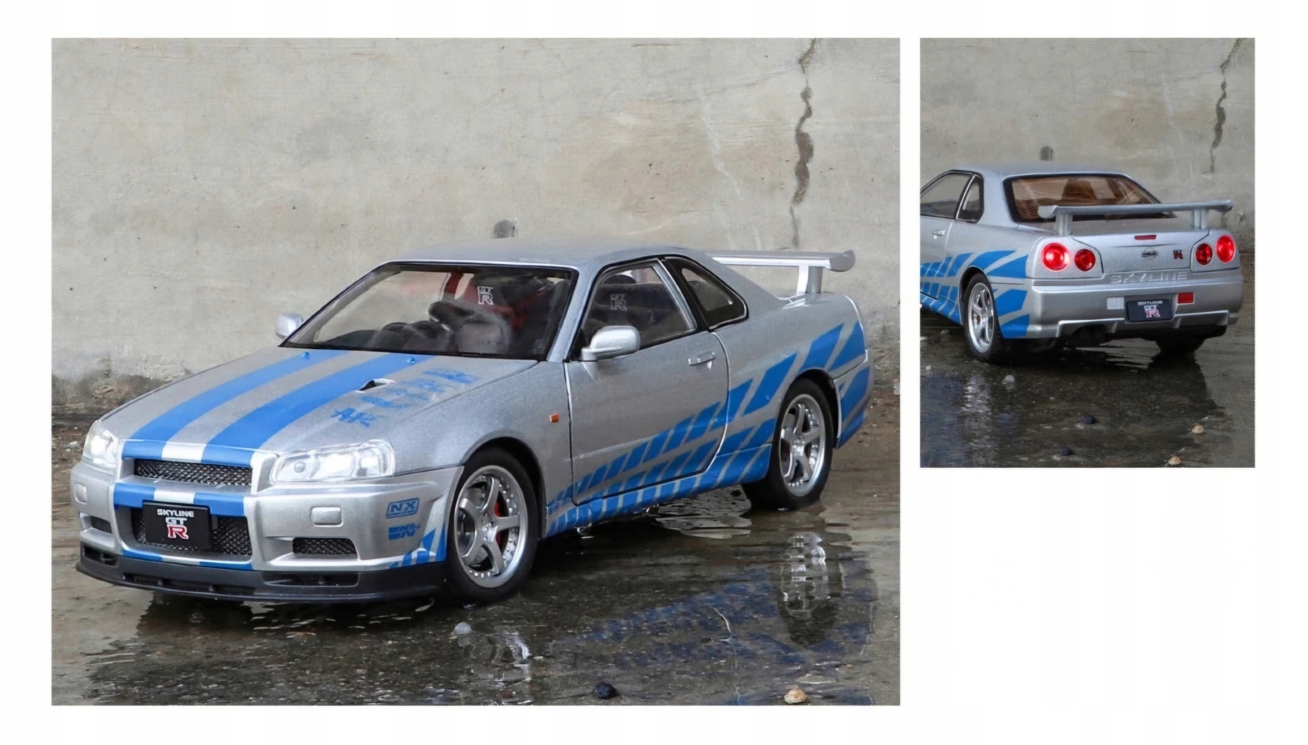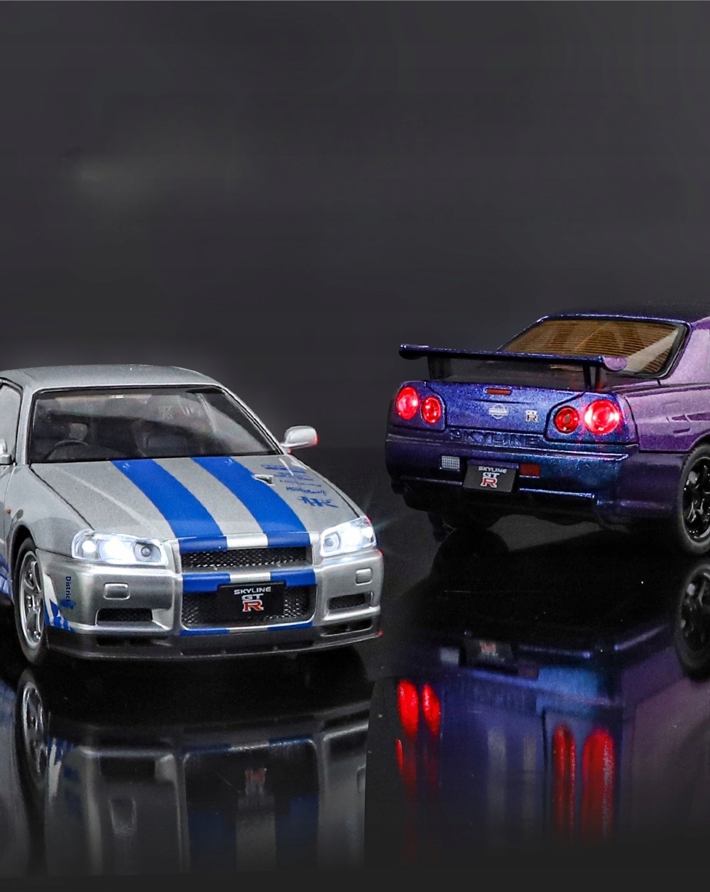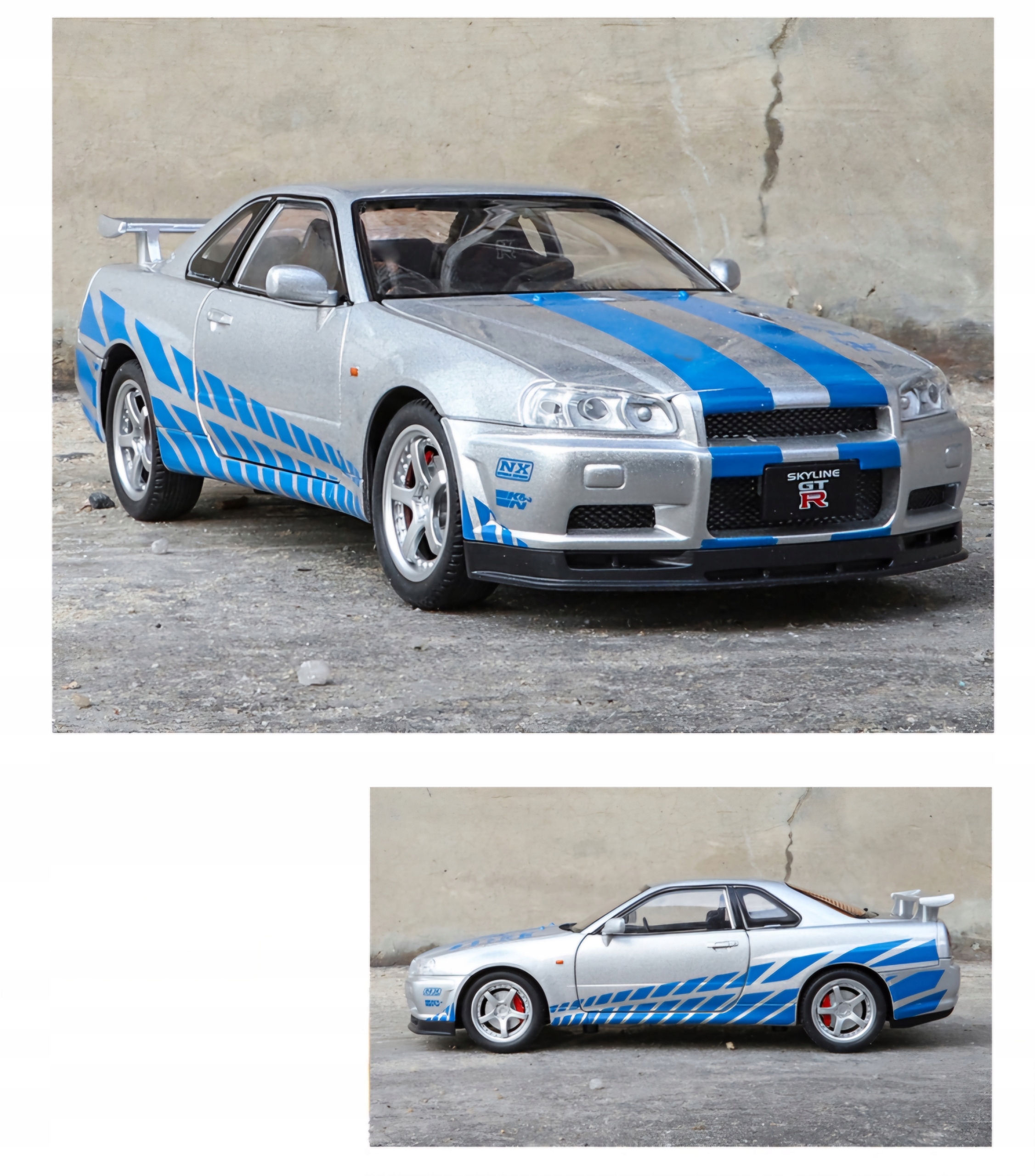 МЕТАЛЕВА МОДЕЛЬ NISSAN SKYLINE GTR R34 1:24 SOUNDS OF LIGHT DRIVE 21CM