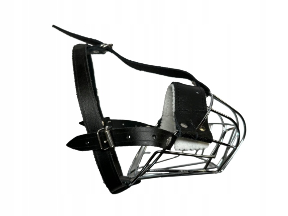 Намордник виготовлений із термічно покращеної сталевої дроту, покритий антикорозійним покриттям (хром), оброблений чорною високоякісною шкірою. Намордник має таку форму, що не шкодить собаці і в той же час є зручним. Запобігає кусанню та збиранню бруду.