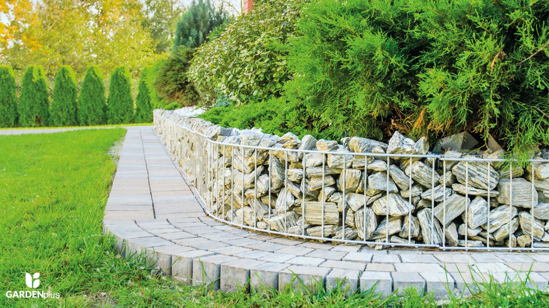 Габіонний бордюр дозволяє оформити простір і прикрасити сад по-сучасному. Широкі краї ідеально підходять для демонстрації великих кущів, хвойних дерев, квітів і навіть виноградних лоз. Краї прикрашають простір навколо внутрішнього дворика, в альпінарії або поруч із будівлею.