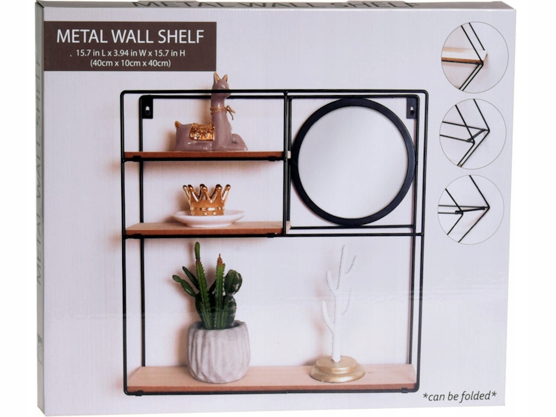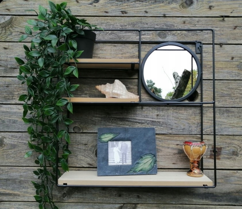 Металева підвісна полиця з дзеркалом Loft 40x40x10 см