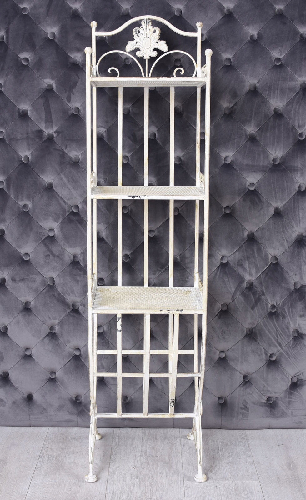Наведена вище металева полиця для ванної буде такою меблею. Він виготовлений у вінтажному стилі, провенкалі або пошарпаний шик. Його металевий дизайн переплітається в унікальні та чарівні прикраси, вводячи таємничий настрій. У свою чергу, вершковий білий додає певну ностальгію та таємницю. Художня форма представляє натяк на грайливість.