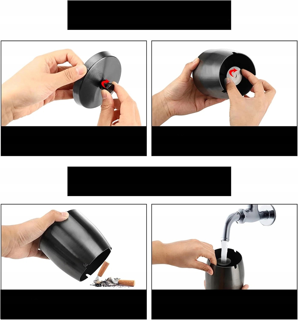 Легко очистити: відкрутіть середню колону попелу і викиньте в кошик сигаретної задника та попелу. Промийте милом і водою і залиште висохнути. (Щоб уникнути дряпання поверхні, не очистіть попільницю з твердими предметами).