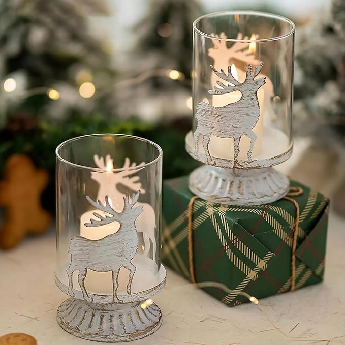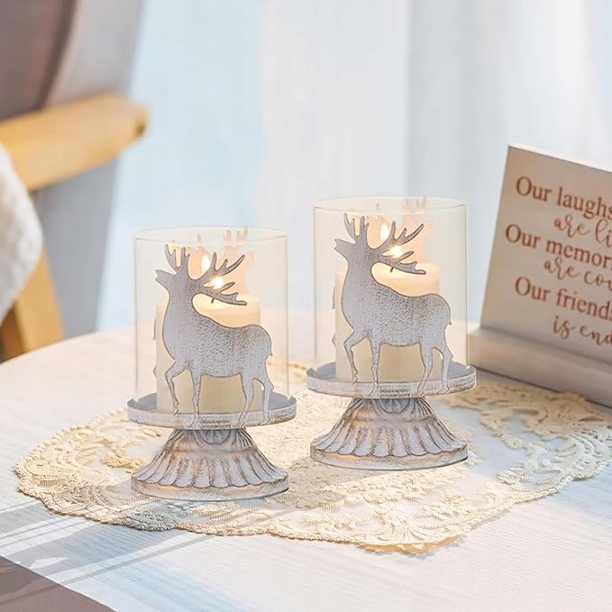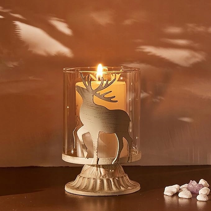- 【Унікальні різдвяні прикраси для вашого дому】Делікатний і витончений візерунок оленів у поєднанні з вигадливим різьбленим візерунком на основі створить атмосферу у вашому домі на Різдво завдяки мерехтливому вогню свічки!