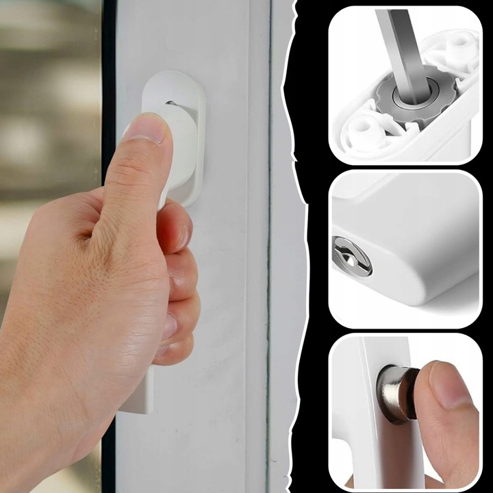 подбайте про безпеку вашого будинку дому та близьких завдяки суцільній ручці вікна, зафіксованою ключем. - це практичне рішення, яке захищає від несанкціонованого відкриття вікна - як через дітей, так і через потенційних грабіжників. виготовлений із сильного металу, стійкого до пошкодження та щоденного використання, буде працювати в кожному будинку, офісному чи комунальному об'єкті.