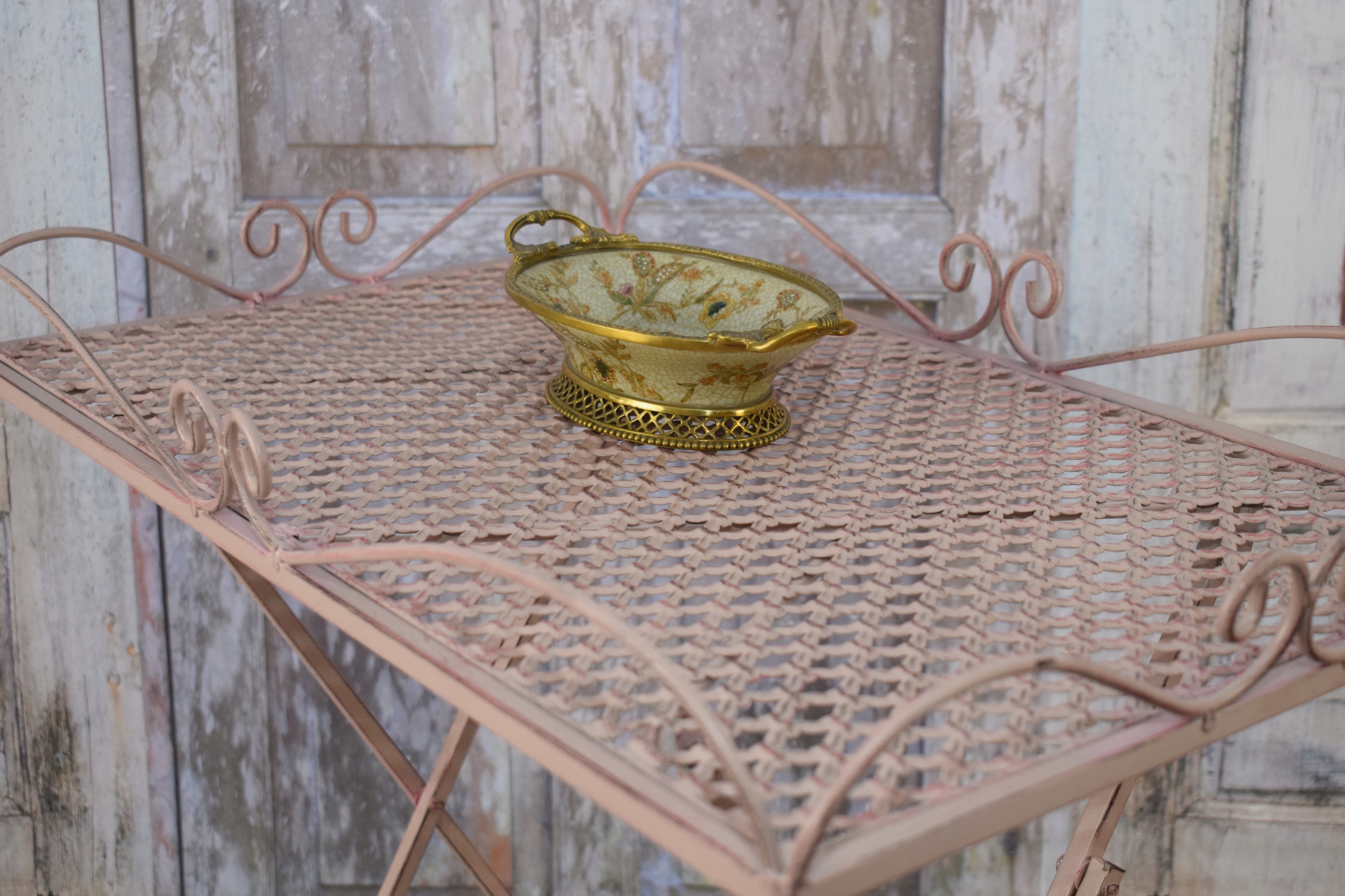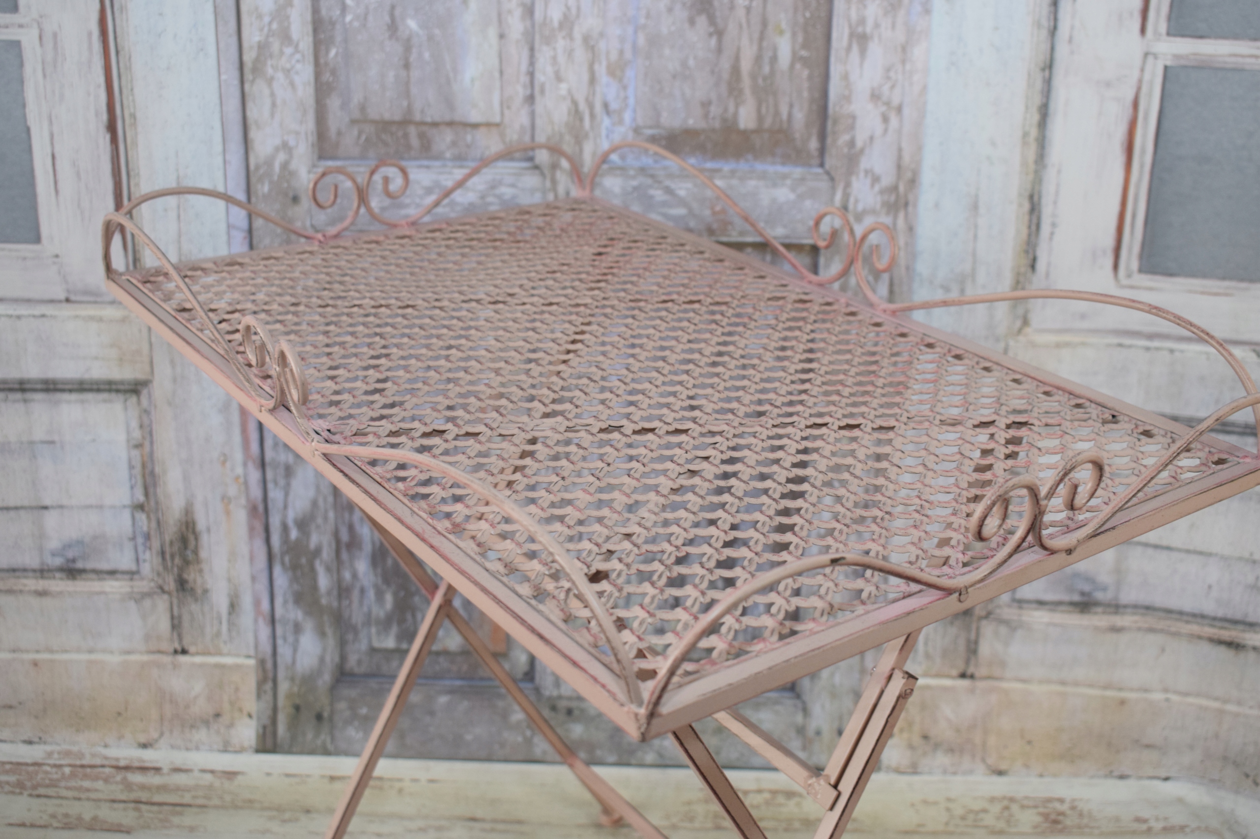 Металева садова підставка для квітів Стіл - Рожевий стіл - Ажурний сад кав'ярні