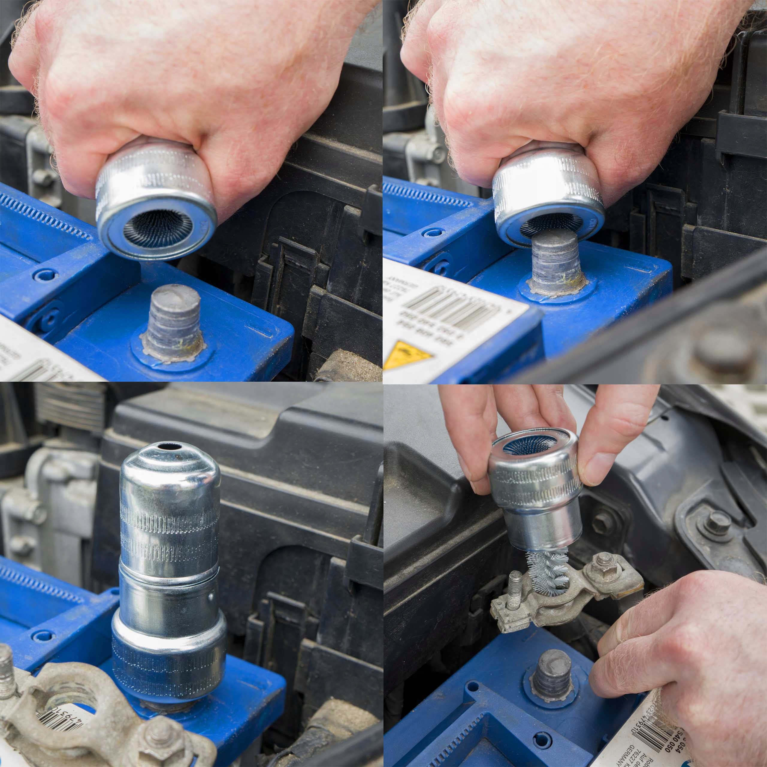 Подвійна пензлик epacc118 -це практичний інструмент, призначений для очищення клем та полюсів акумулятора. Завдяки цьому ви швидко та легко видалите осад, корозію та слот, що негативно впливає на якість електричних з'єднань.