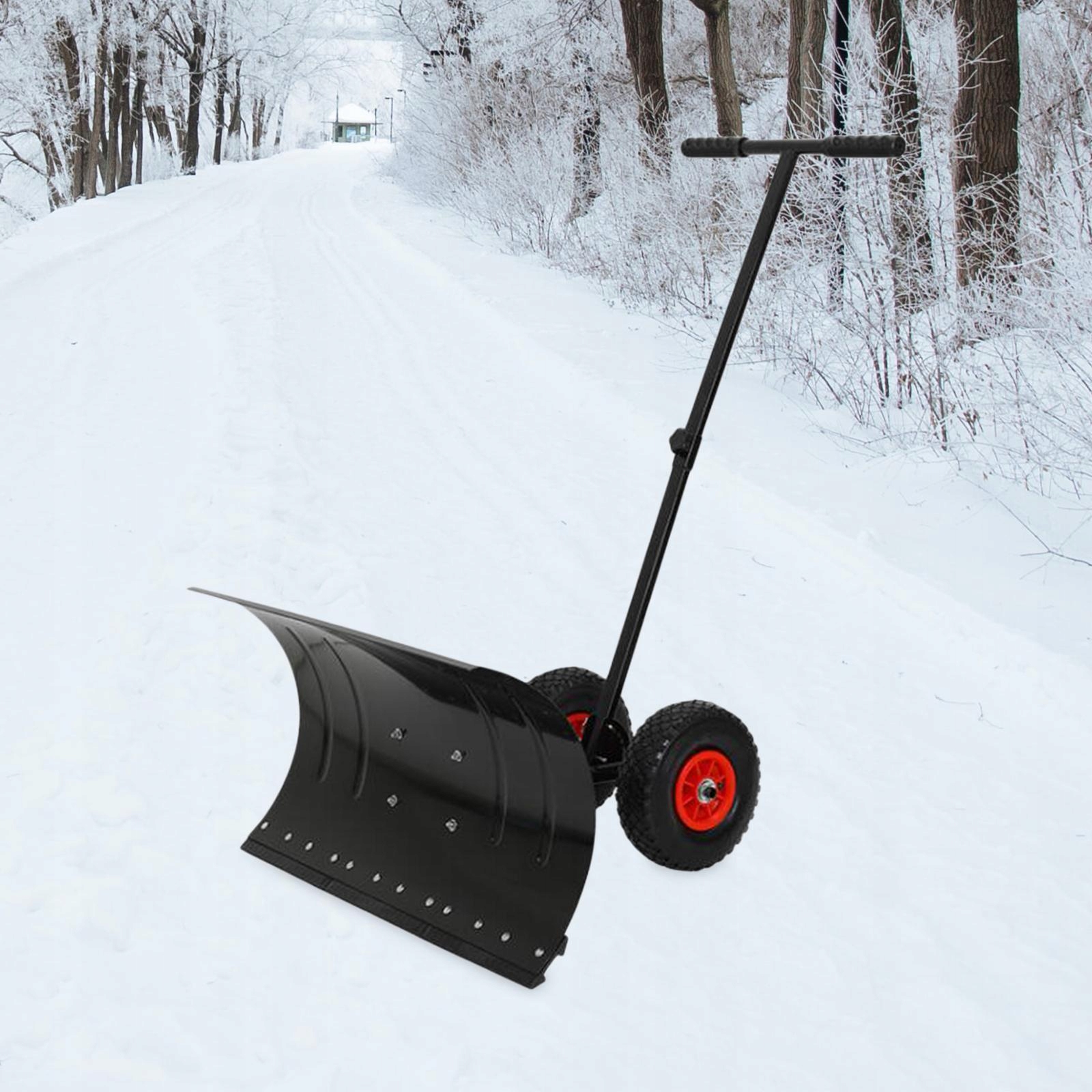 [Регульований кут і висота] Сніговий штовхач з колесами був розроблений з регульованим кутом натискання, що дозволяє очистити більше місць, таких як пандуси, шляхи та тротуари. Висота ручки можна відрегулювати залежно від потреб.