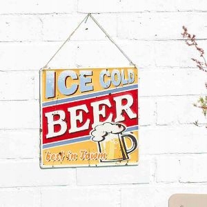 Рельєфна барвиста металева пластина з унікальним написом «КРИЖАНЕ ХОЛОДНЕ ПИВО» для підвішування на стіну.