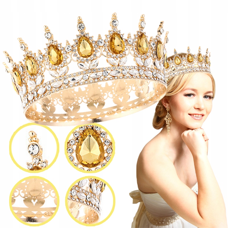 ♛♛♛ Прекрасна позолочена корона страз ✨ інкрустована блискучими стразами та принцесою на день весілля. Петля Увімкнення безпечного кріплення до ваших суконь, додано безпеку та комфорт. Pageans✅, День Святого Валентина✅, Annivery✅ або для будь -якого випадку ви хочете бути більш чарівними