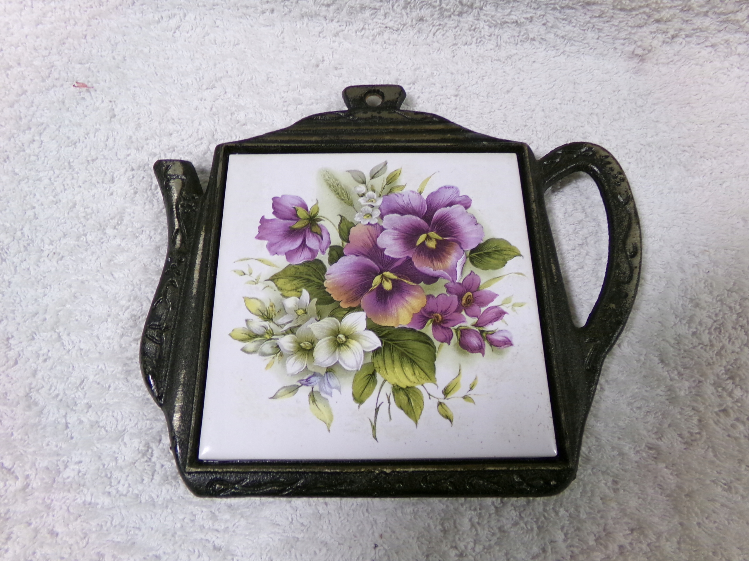 Металева основа з керамічною плиткою на глечик з розмірами 17,5х15 см, вагою 0,28 кг. Стан дуже хороший, без пошкоджень.