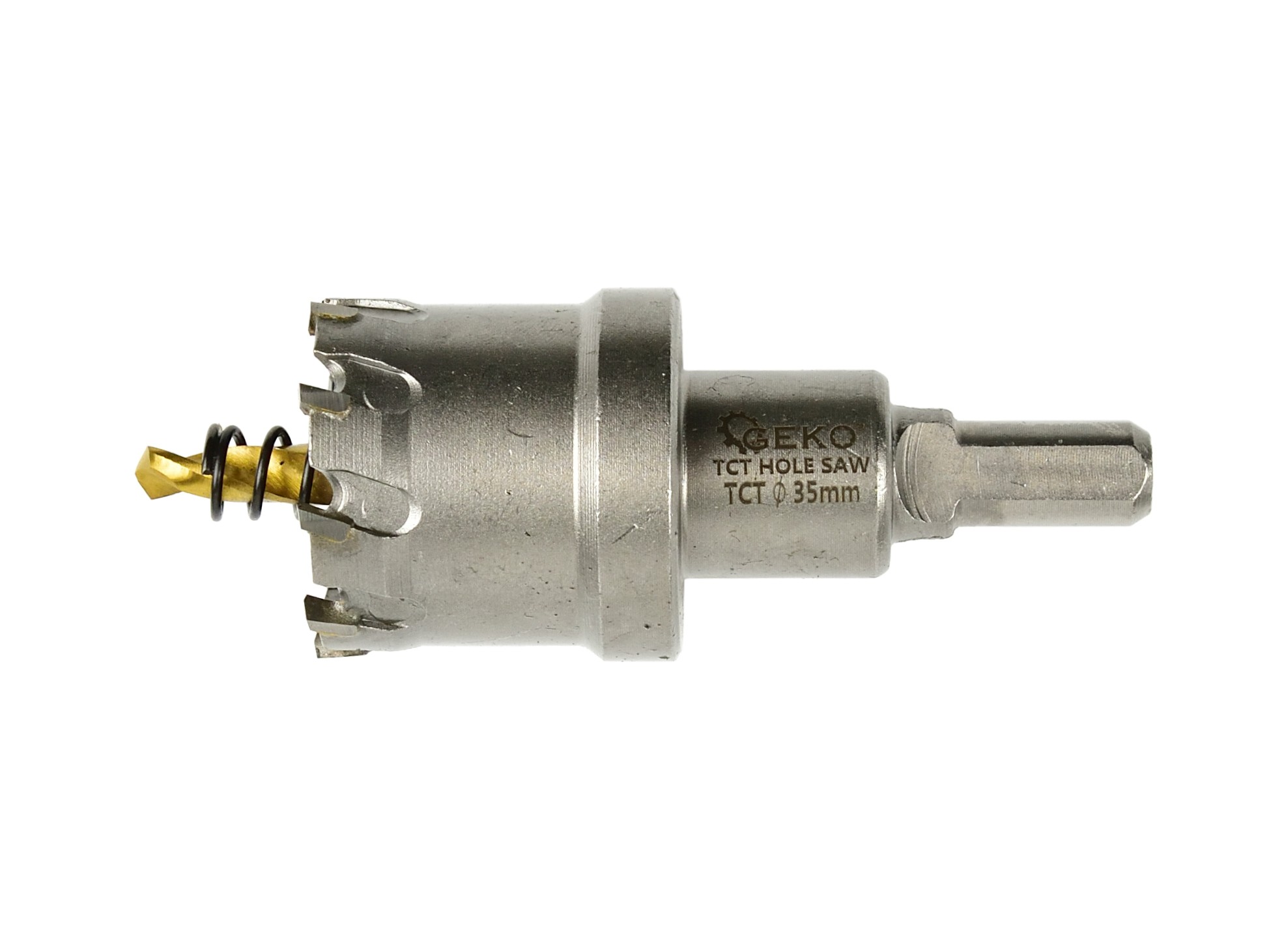 Набір 10 TCT Hollemles для металу в розмірах 16-53 мм. Лопатки, виготовлені з спірованих карбідів, які характеризуються значно більшою твердістю та стійкістю до високих температур порівняно з високою швидкістю HSS. Призначений для виготовлення більшого діаметра отворів у сталі, чавуні, кольорових металів, деревини, пластмас тощо. Щоб підвищити точність різання, використовували свердло, що веде від сталі HSS. Пружина, прикріплена до свинцевого свердла, дозволяє легко зняти здобич.