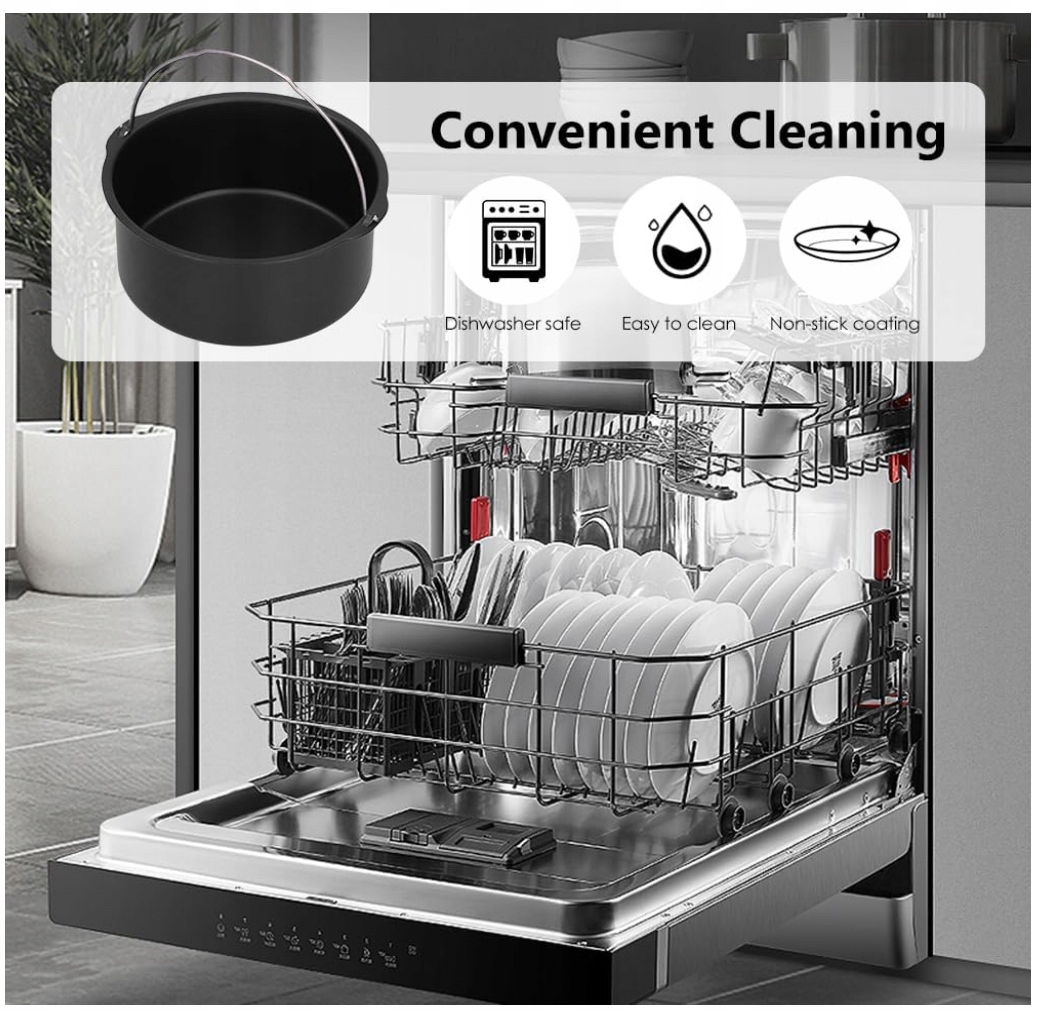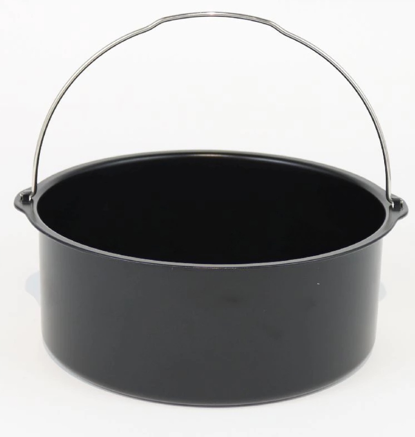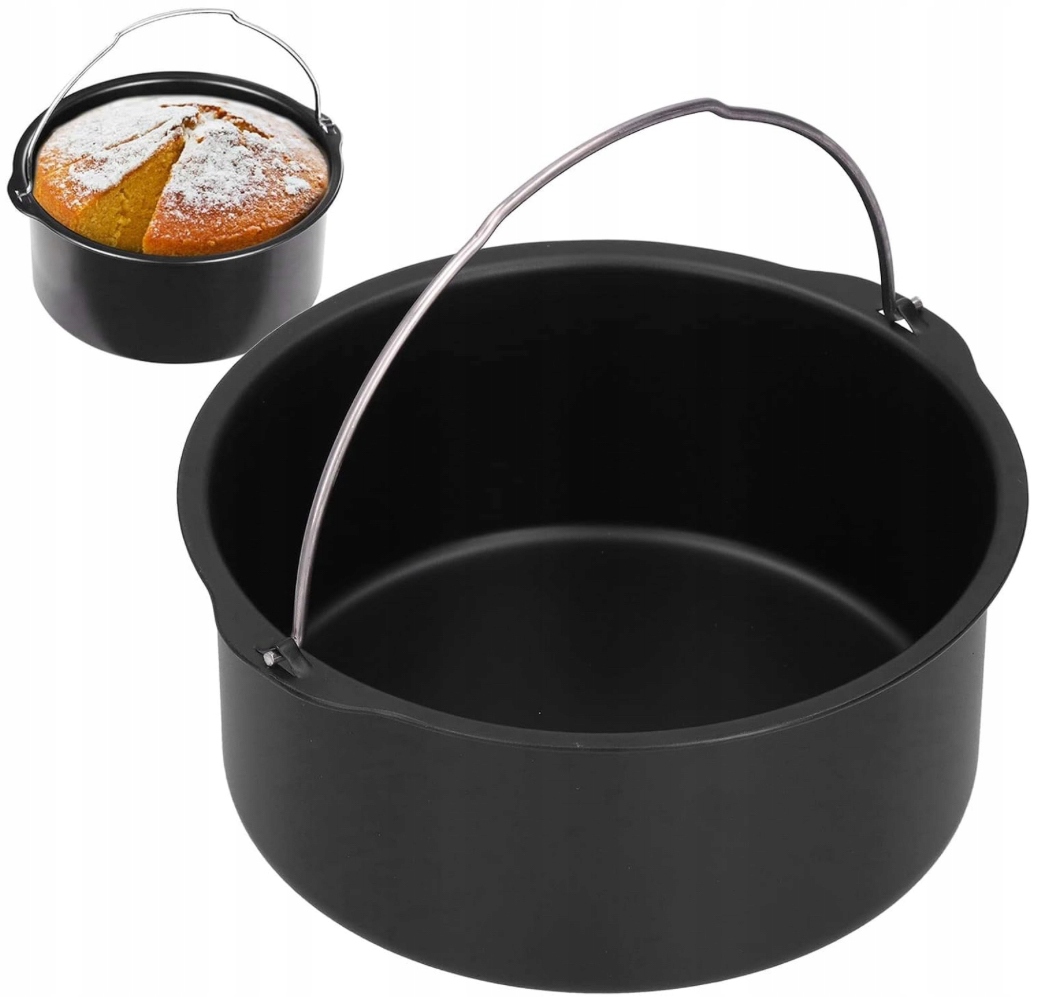 Стійка і практична форма з вуглецевої сталі з антипригарним покриттям і ручкою з нержавіючої сталі. Ідеально підходить для випікання тортів, хліба, м’яса, риби чи запіканок у фритюрниці або в духовці.