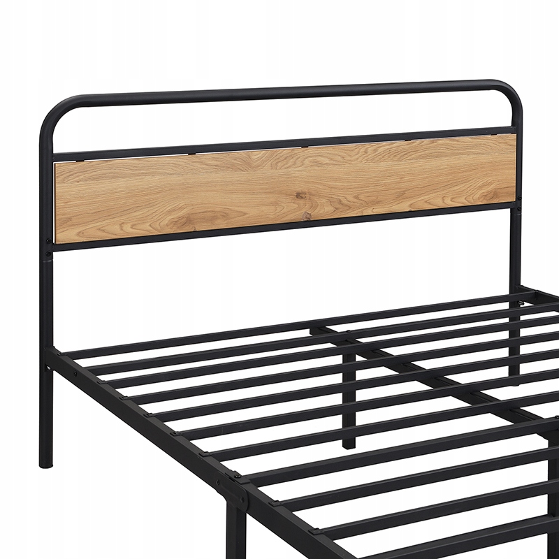 рамка ліжка виготовлена з чорного металу, Суцільний і міцний, а дерев’яний підголівник приносить в кімнату теплу та природну атмосферу. Виготовлений з твердого металу та міцного МДФ, ліжко поєднує природну красу деревини з міцністю сучасних матеріалів для забезпечення тривалого життя та стабільності.