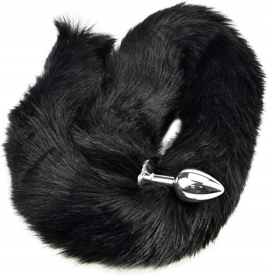 Лисичий довгий хвіст Анальна пробка Металевий хвіст тварини Анальна пробка Еротична рольова іграшка для косплею Секс-іграшки Інструменти для флірту для пар Чорний Ролак (S)