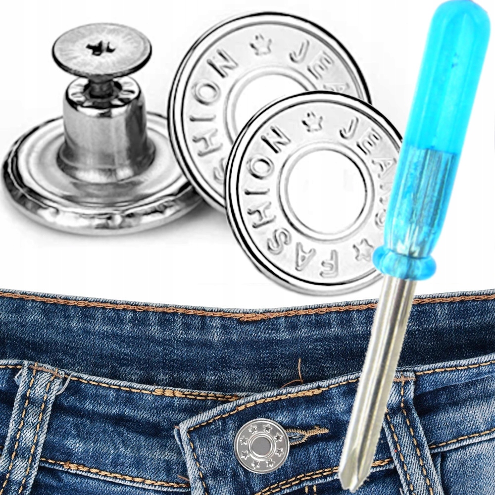Завдяки металевій кнопці, що загвинчується, ви можете відремонтувати улюблені джинси за кілька секунд, не звертаючись до кравця. Вам не потрібні додаткові інструменти, оскільки викрутка входить у комплект.