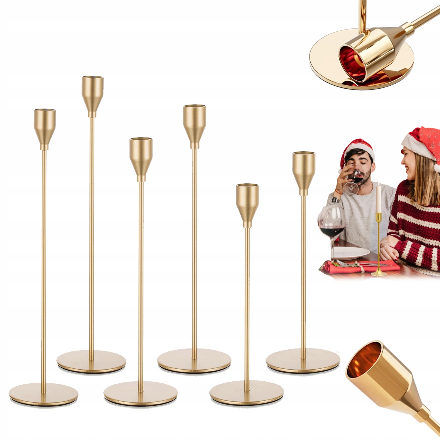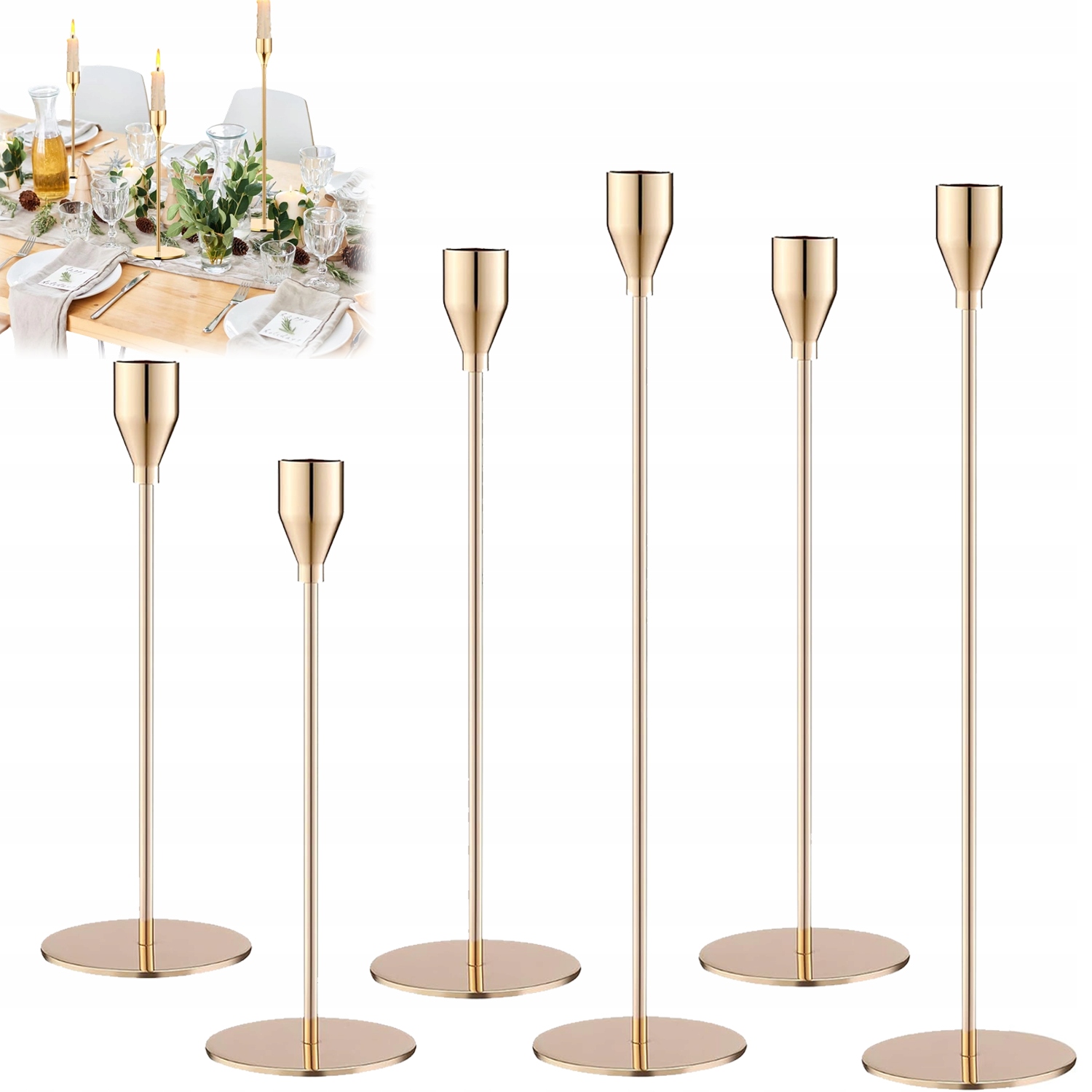 🕯6 Золотий металевий свічник Елегантний високий дизайн для дня народження весільної вечірки 🕯