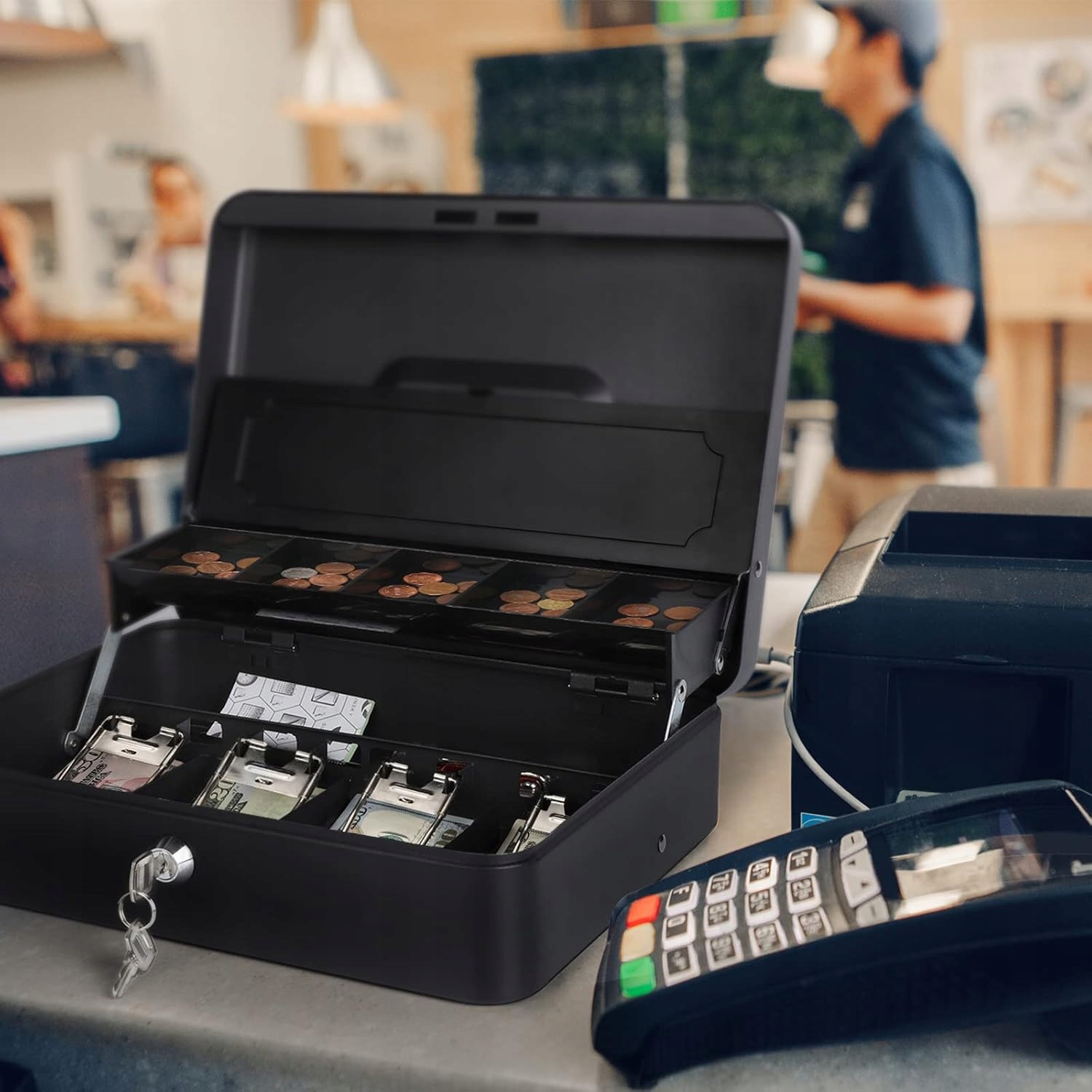 Грошова скринька ідеально підходить для використання в домашніх умовах, офісі, магазинах, на ярмарку, школах, а також на різних заходах, де необхідно безпечно зберігати готівку та інші цінні предмети.