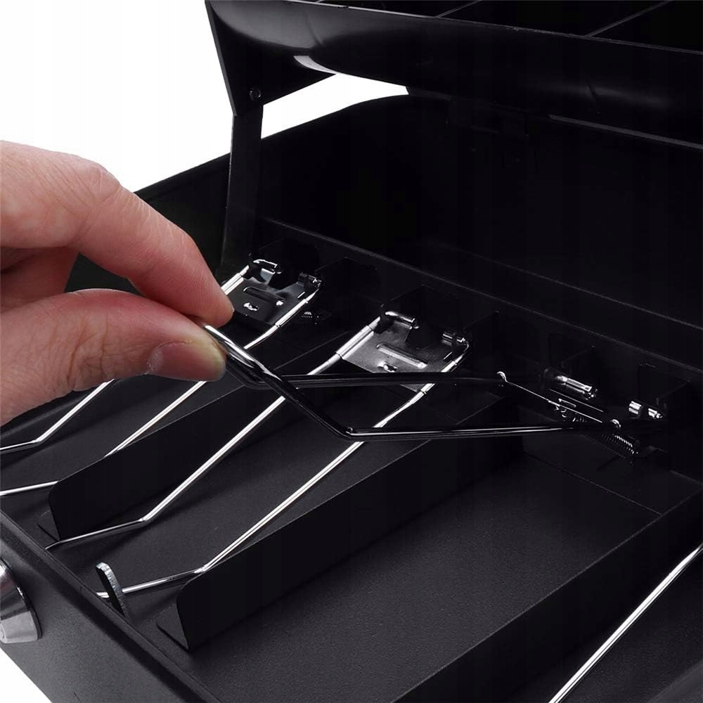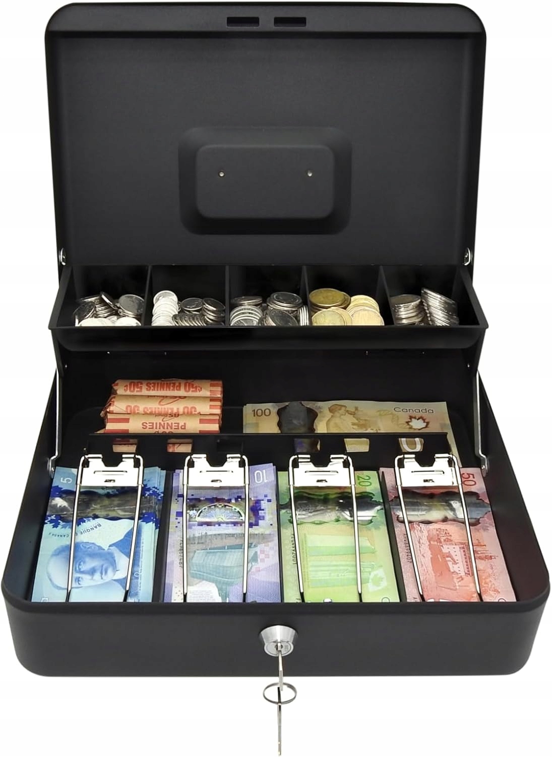 Забезпечте свої цінні предмети за допомогою нашої металевої грошової касети! Ідеально підходить для використання в домашніх умовах, офісі, магазині, а також під час різних заходів. Шук виготовлена з високоякісної сталі, гарантує довговічність та безпеку. Оснащений ключовим закриттям, забезпечує захист від несанкціонованого доступу. Завдяки продуманому дизайну та практичним відділенням організація готівки, монет та інші предмети ніколи не була простішою.