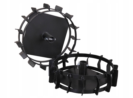 Міцні металеві колеса для фрез з монтажним діаметром 26 мм. Сумісний з пристроями HORTMASZ TIG6580-1 BS і TIG6580-1 L, NAC TIP80-196-M. TEXAS 534B, Lilii 534TG. Колеса забезпечують безпечне керування фрезою на складній місцевості. Вони також підвищують стабільність машини під час роботи з таким обладнанням, як окутник, плуг, копалка або фрезера. Вони характеризуються найвищою якістю виготовлення завдяки використанню виключно товстого листового металу.