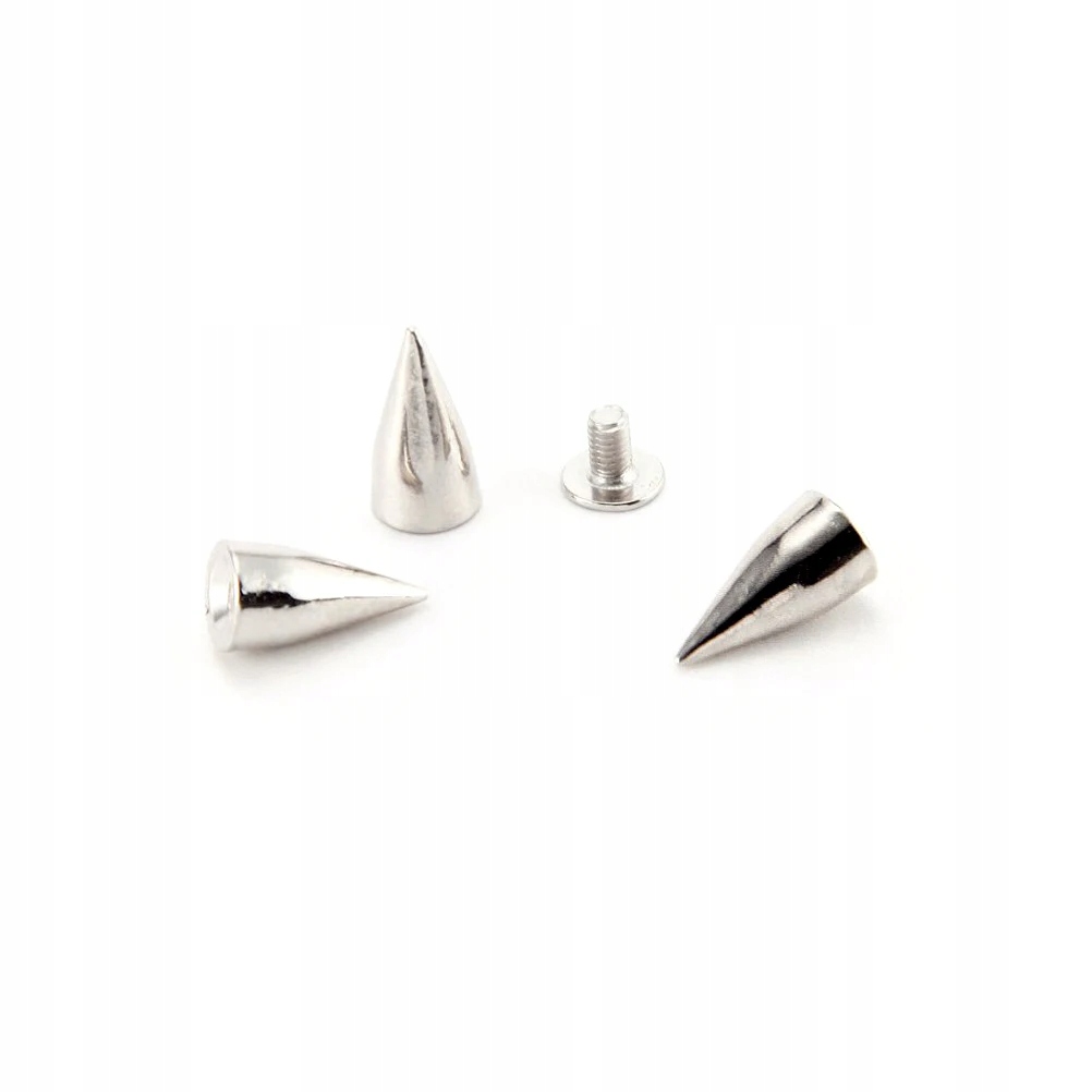 Це набір із 100 шт. крутих конічних шипів 7 мм*14 мм, які виготовлені з міцного алюмінієвого сплаву та чудово підходять для панк-черевиків, панк-курток, собачих нашийників, шкіряних виробів тощо. Ці шипи та шпильки також корисні в будь-якому саморобному проекті, щоб продемонструвати свій унікальний смак і індивідуальність.