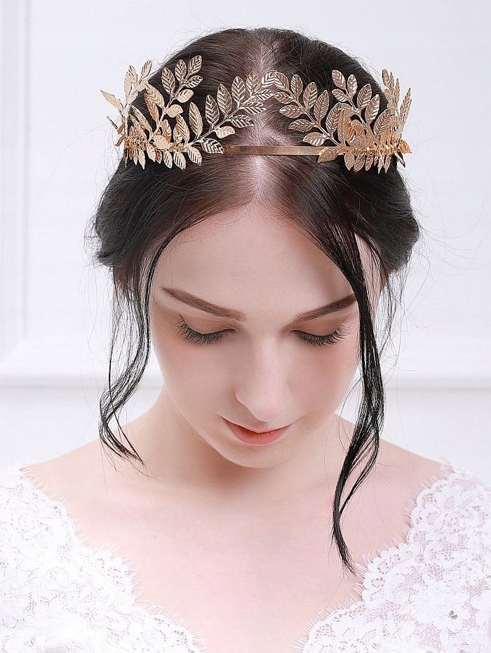 Тіара із золотим листям, виготовлена з найякісніших матеріалів, натхненна грецькою богинею, є величним і вишуканим аксесуаром для волосся ручної роботи що змусить вас відчути себе грецькою чи римською імператрицею