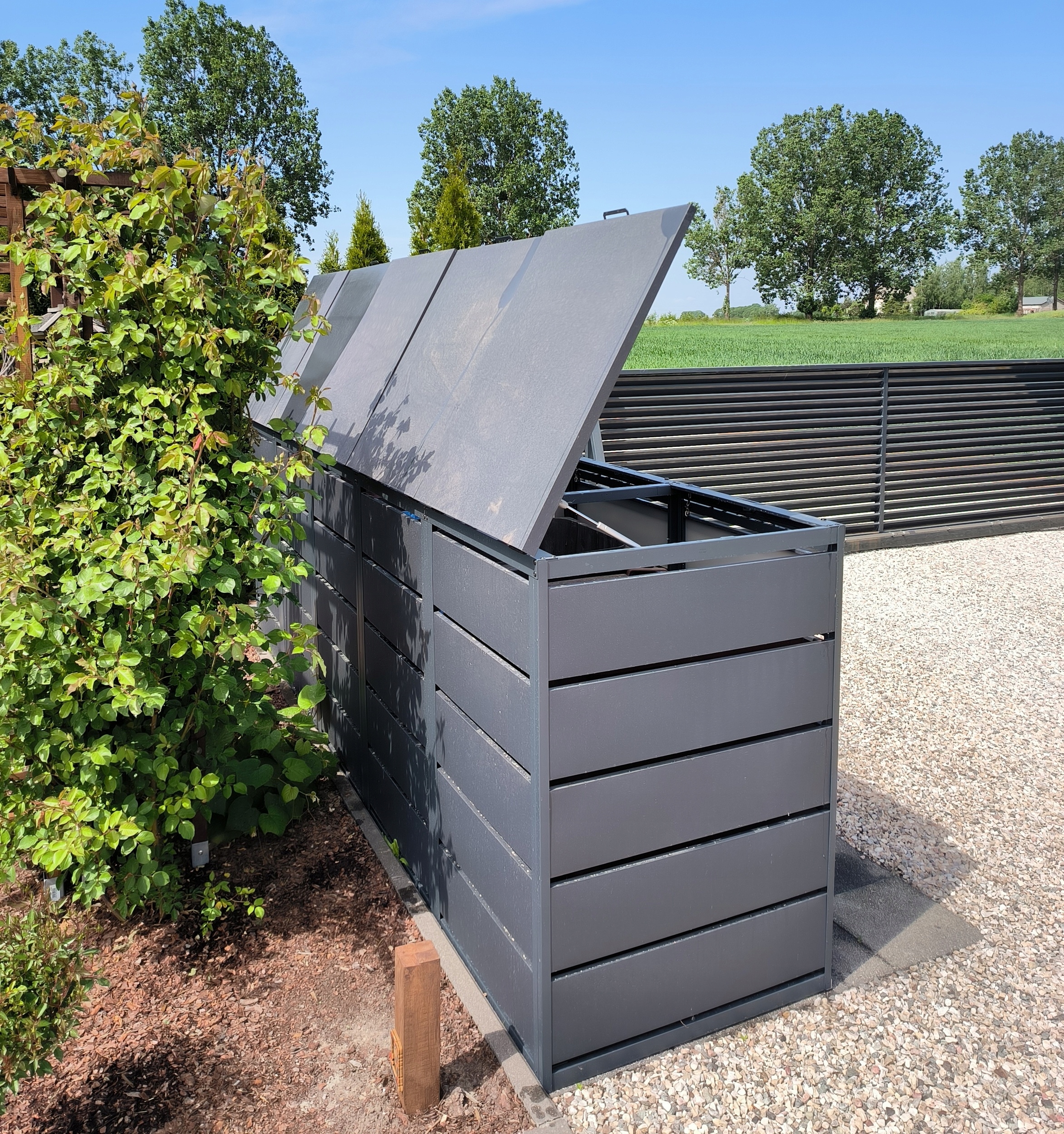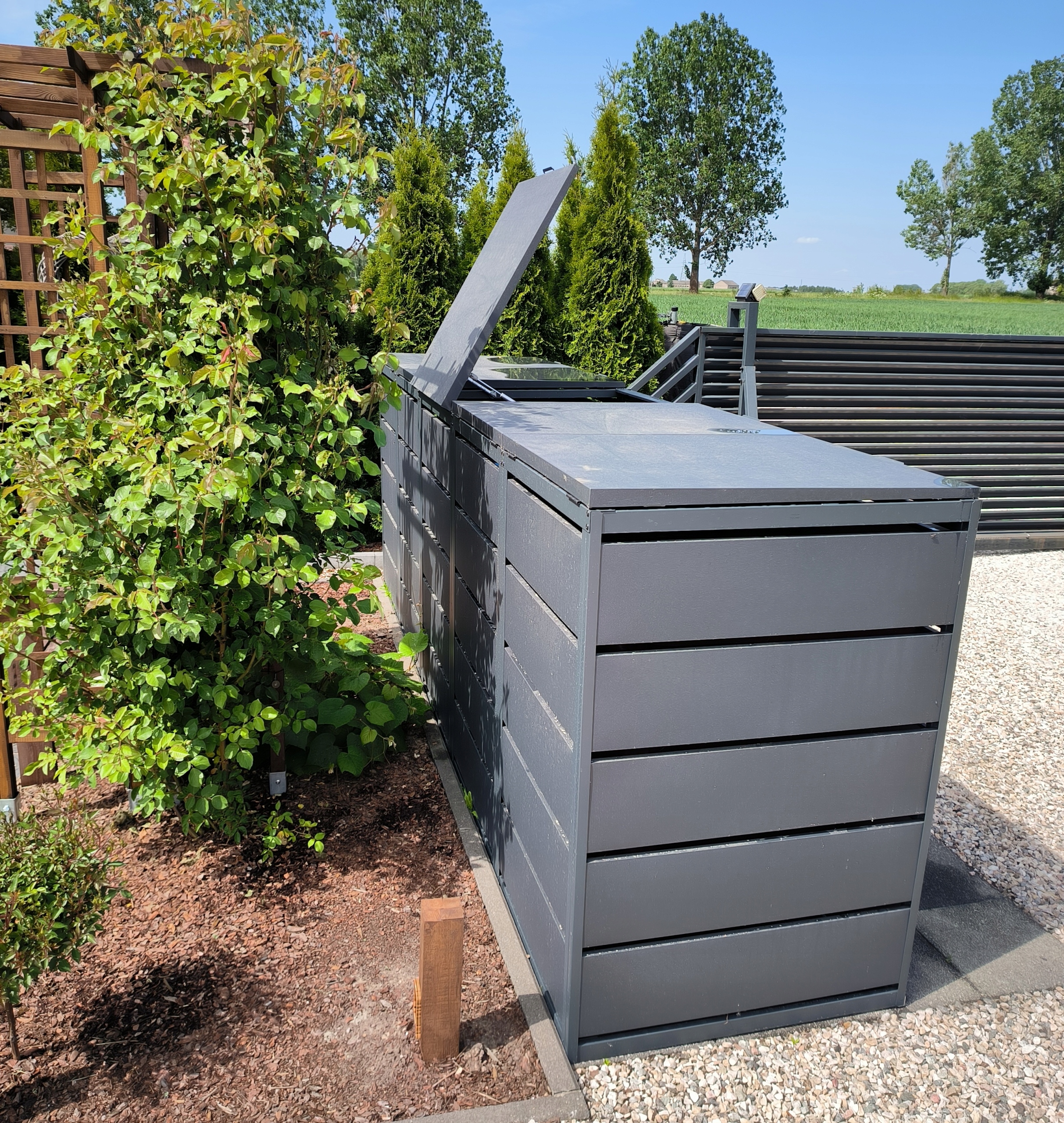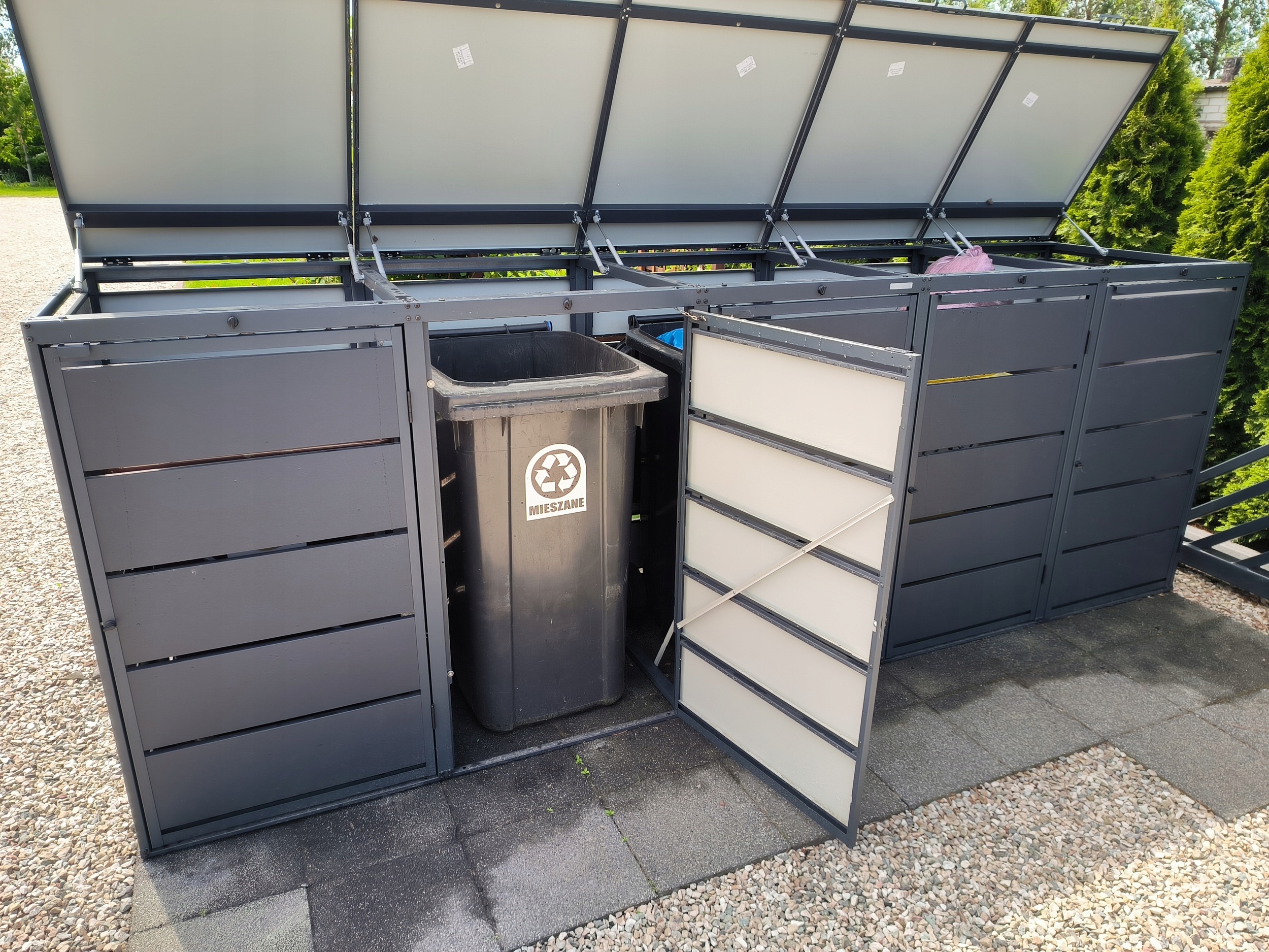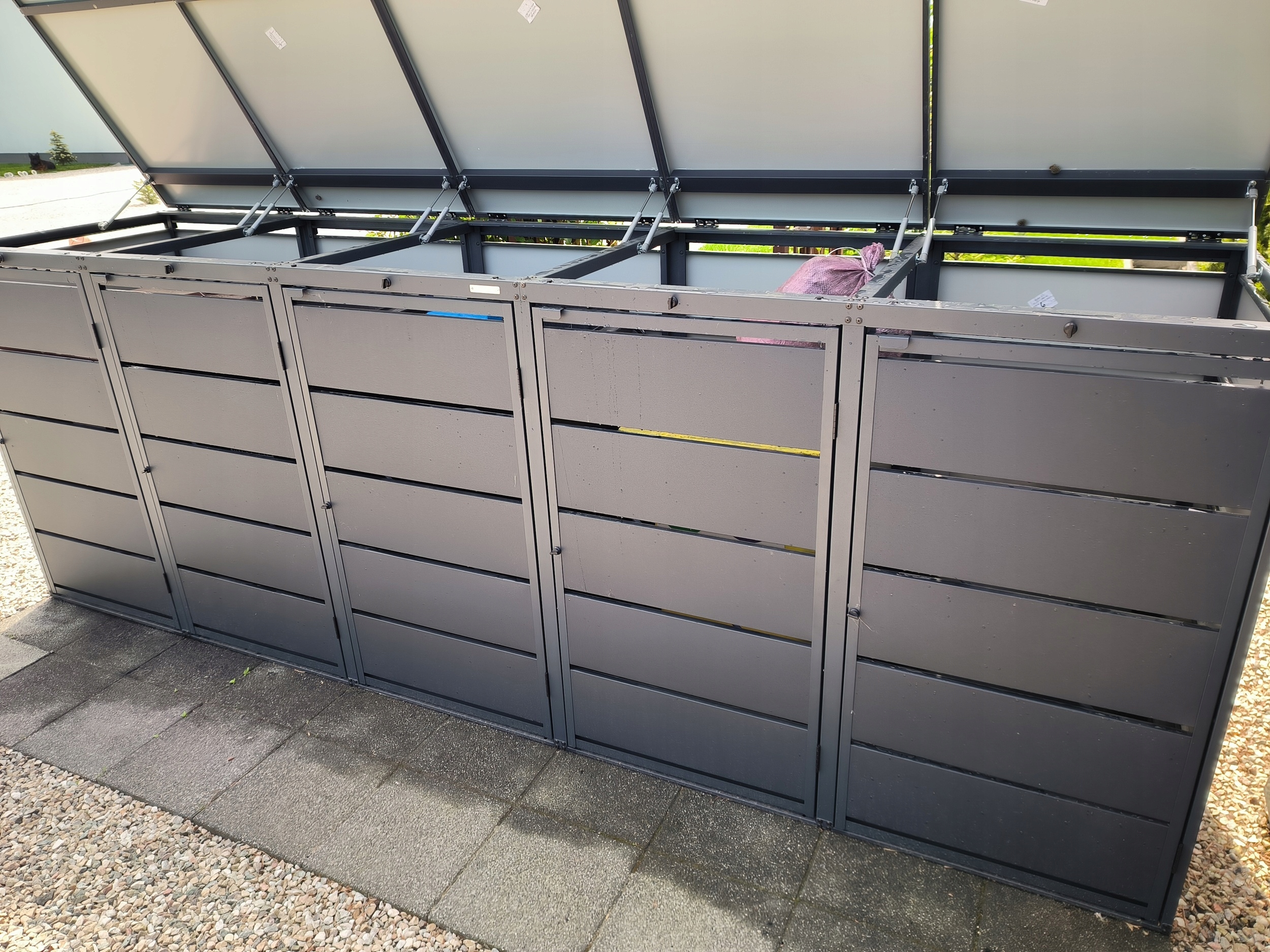 Пропозиція стосується будівель для 5 кошиків 240 л у антрациті Ral 7016. Ми також продаємо будівлі в інших конфігураціях та кольорах під будь -якою кількістю контейнерів. Перевірте наші інші аукціони.